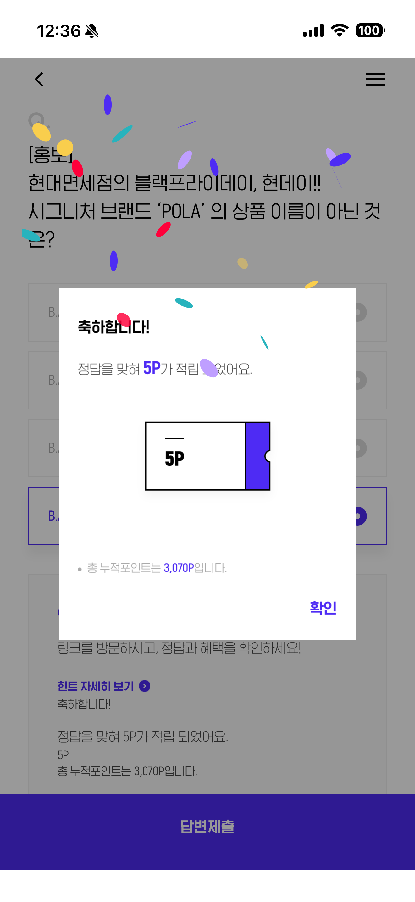 H포인트 퀴즈 2월 10일 정답(현대면세점의 블랙프라이데이, 현데이!! 시그니처 브랜드 'POLA' 의 상품 이름이 아닌 것은?)