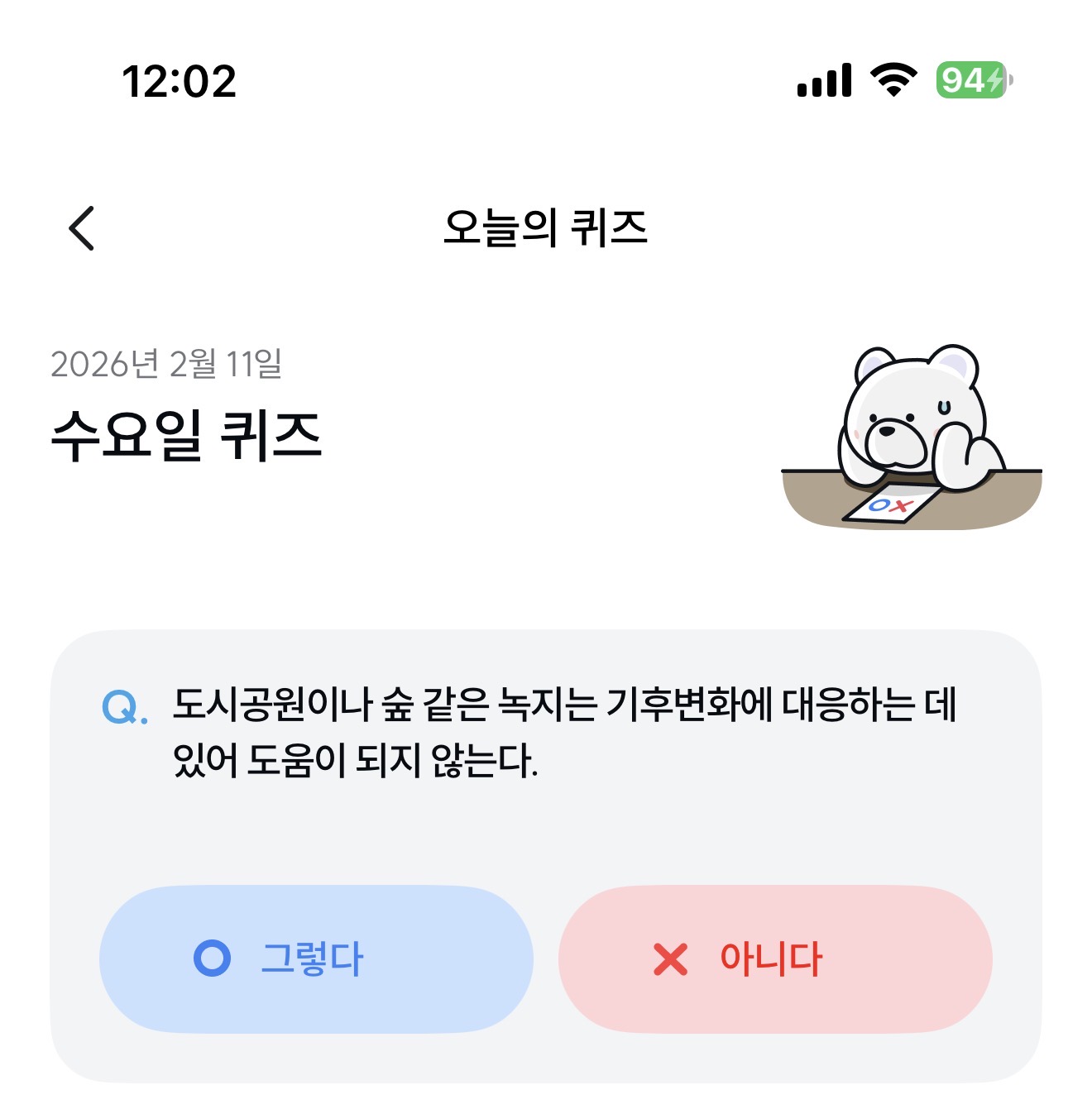 기후행동 기회소득 오늘의 퀴즈 2월 11일 문제입니다