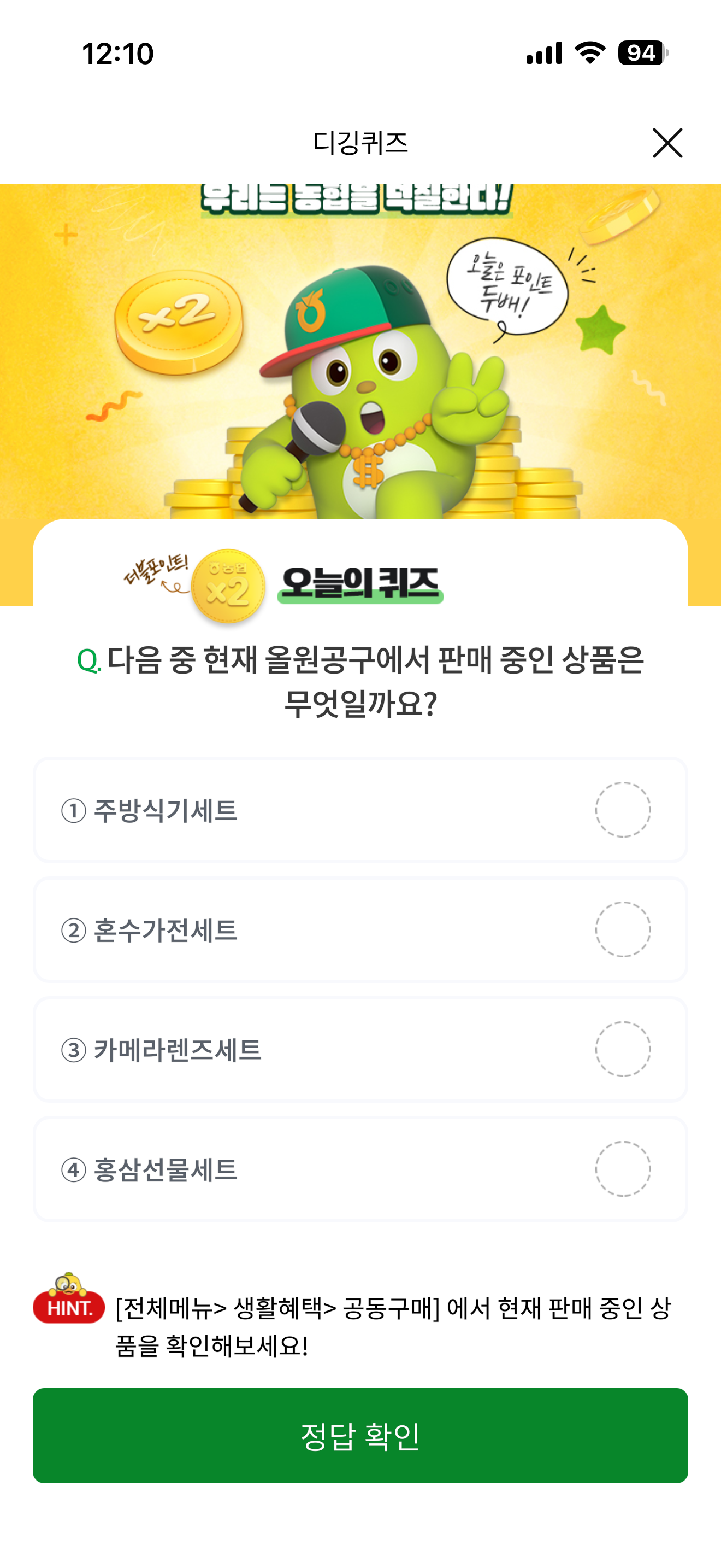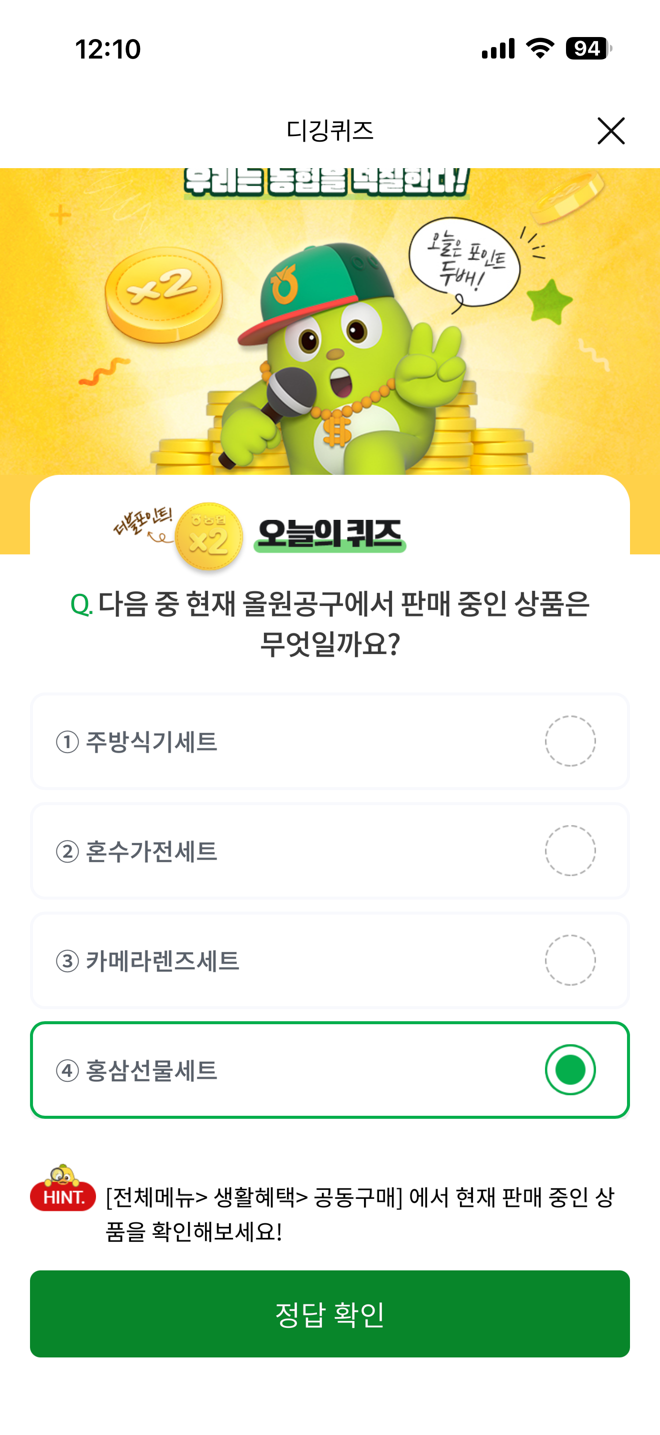 NH올원뱅크 디깅퀴즈 정답은 홍삼선물세트 입니다