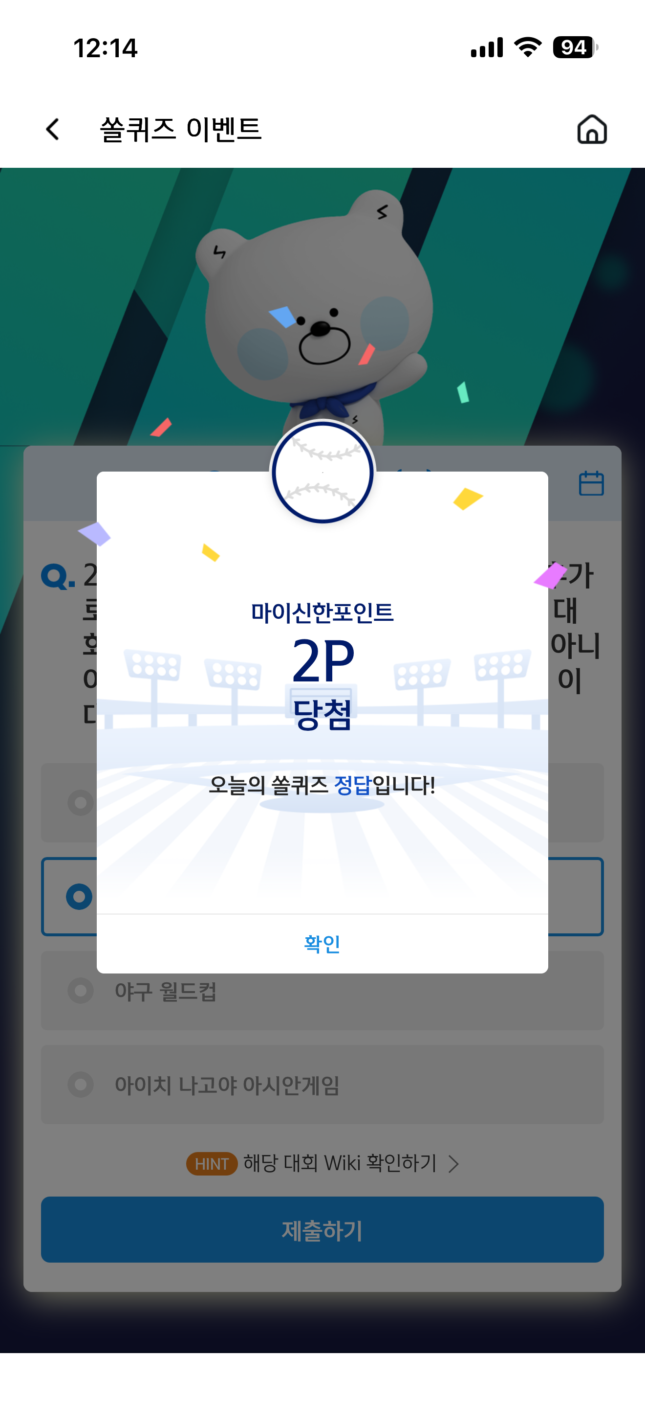 신한 슈퍼SOL 야구/상식 쏠퀴즈 2월 11일 문제입니다