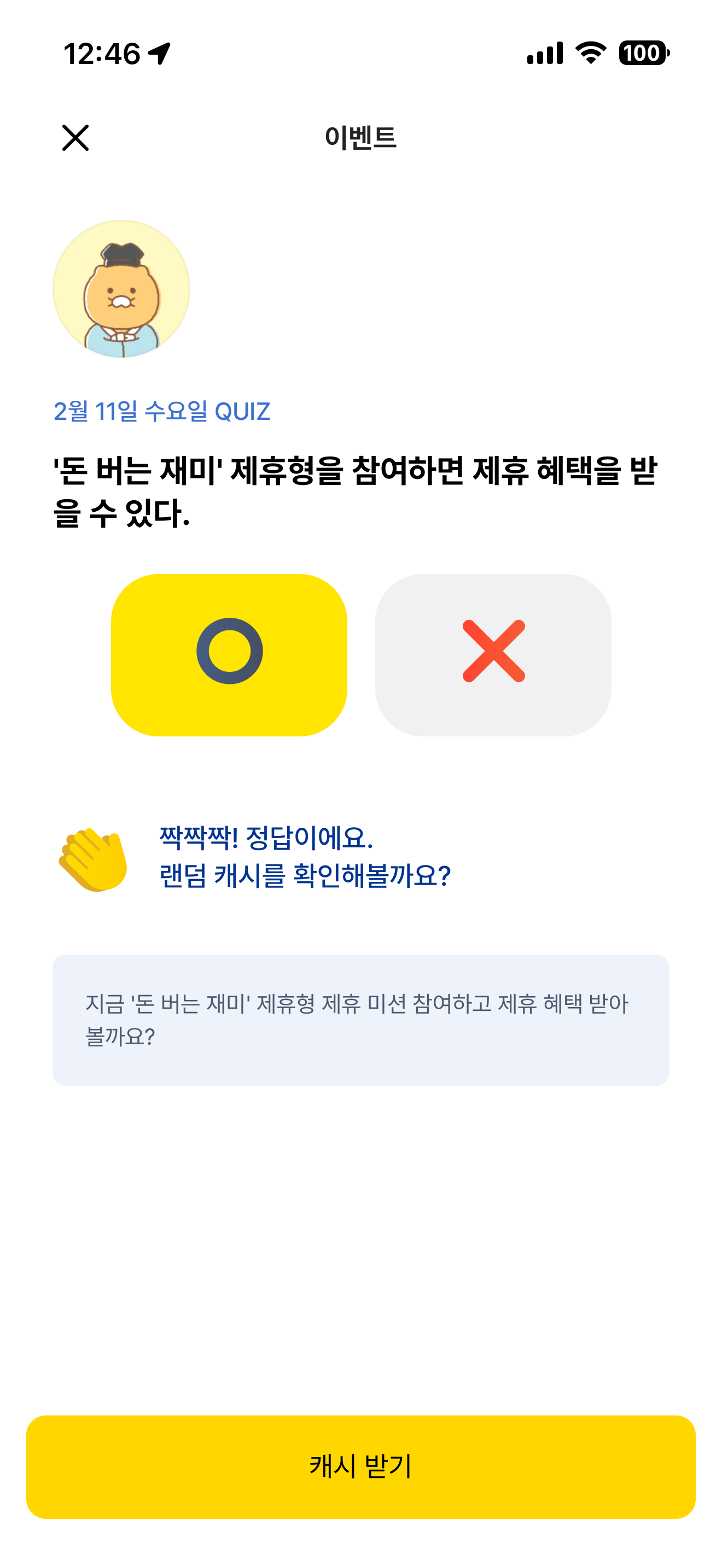 카카오뱅크 OX 퀴즈 정답은 O 입니다