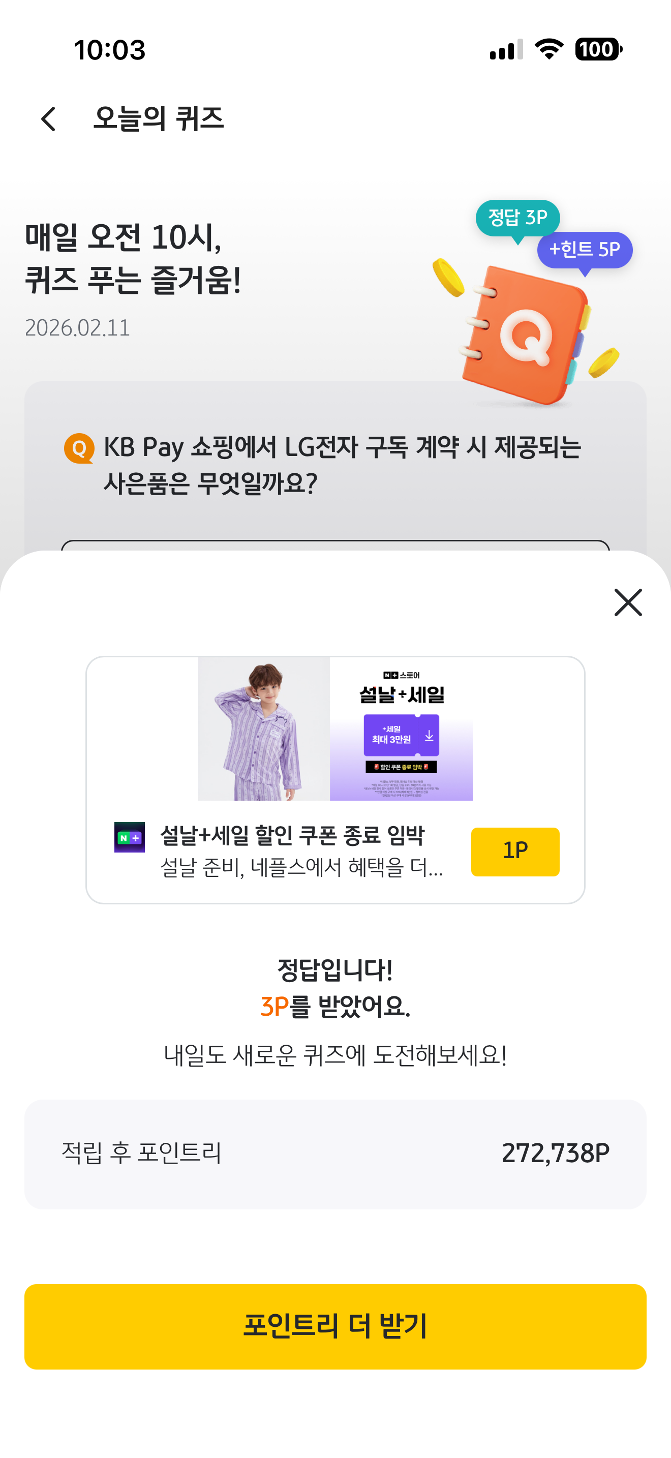 KB pay 오늘의 퀴즈 2월 11일 문제입니다
