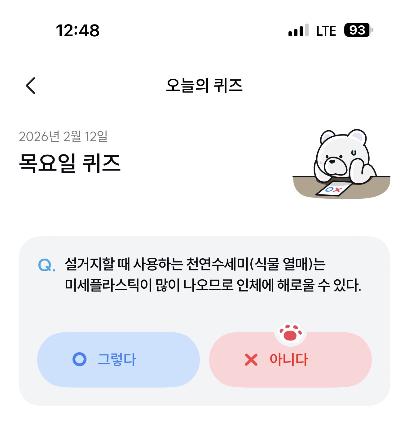 기후행동 기회소득 오늘의 퀴즈 정답은 아니다 입니다