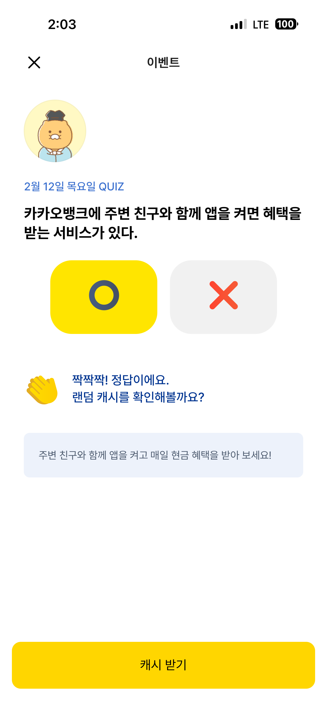 카카오뱅크에 주변 친구와 함께 앱을 켜면 혜택을 받는 서비스가 있다. O, X 퀴즈인데요. 요즘 주변 친구와 함께 앱을 켜면 혜택을 받는 서비스들이 많은데요. 과연 카카오뱅크도 있을까요? 참고해 두세요