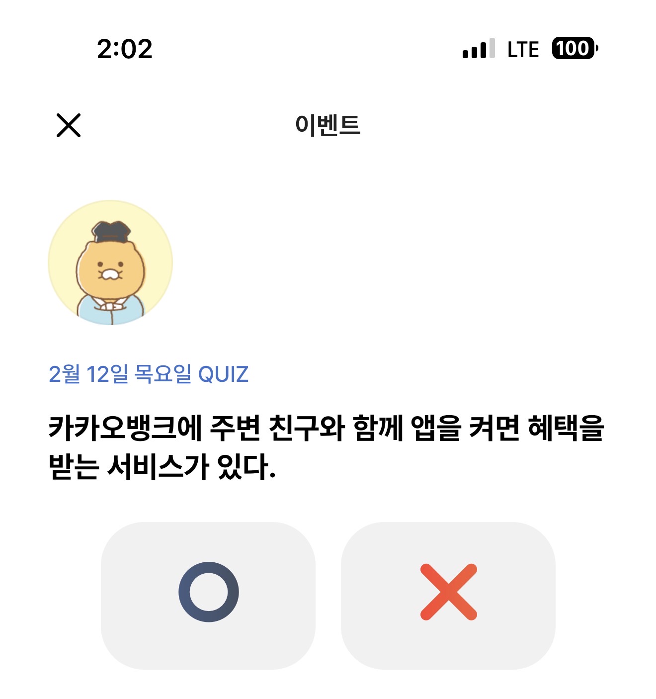 카카오뱅크 OX 퀴즈 2월 12일 문제입니다
