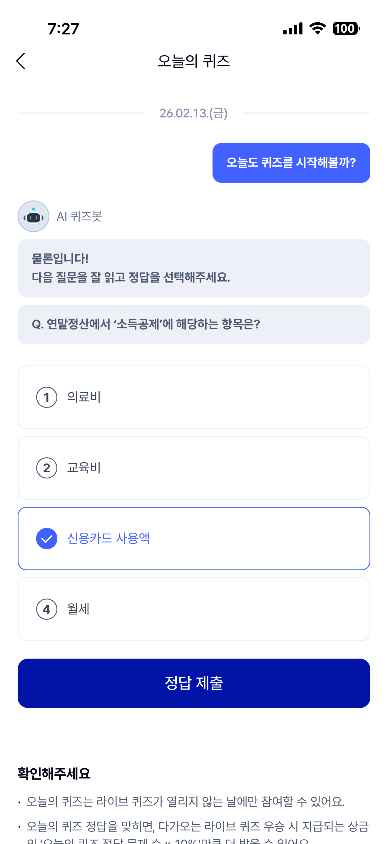 케이뱅크 AI퀴즈 챌린지 2월 13일 문제입니다