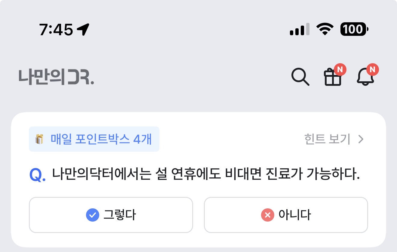 나만의닥터에서는 설 연휴에도 비대면 진료가 가능하다. 그렇다 아니다 선택하면 되는데요. 나만의닥터에서는 비대면 진료 서비스를 하는데요. 과연 설 연휴에도 비대면 진료가 가능할까요? 잘 참고해 두세요