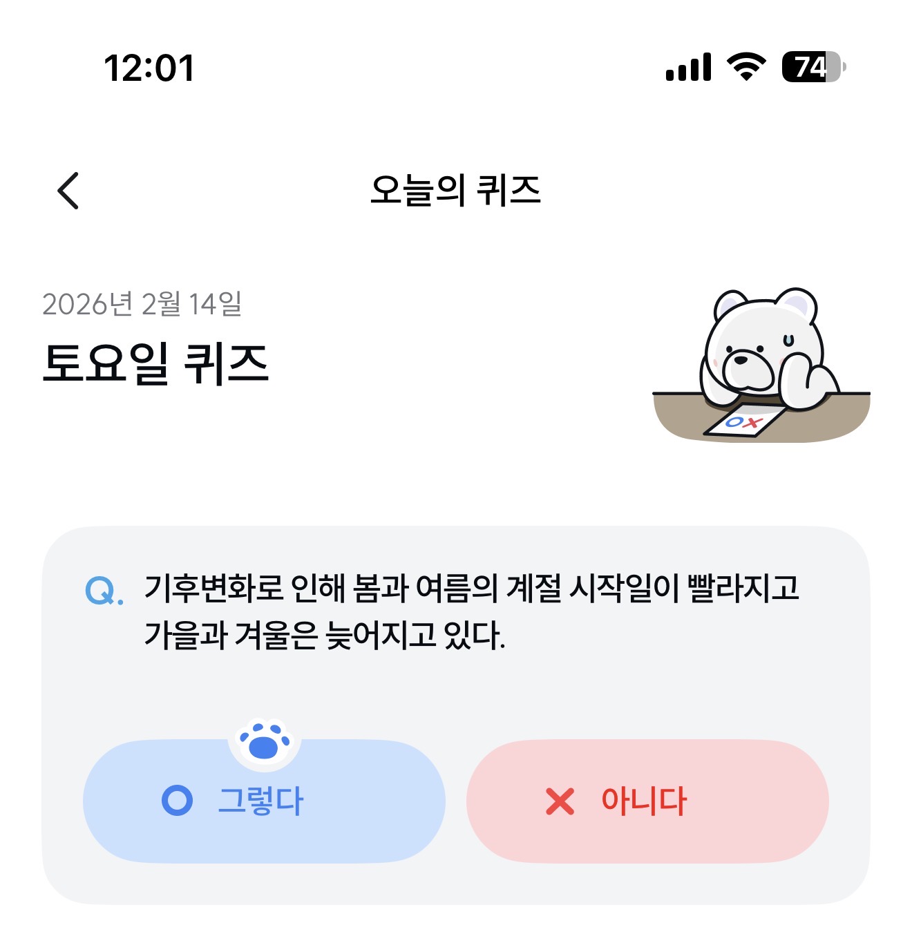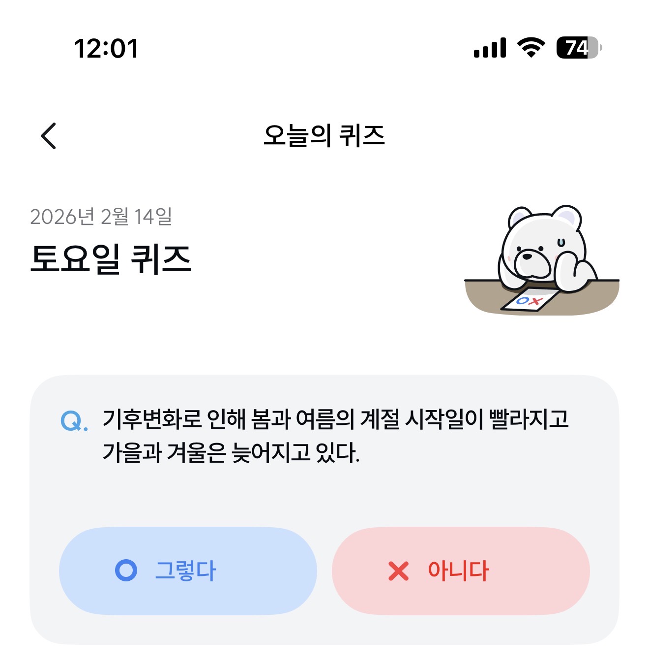 기후행동 기회소득 오늘의 퀴즈 정답은 그렇다 입니다