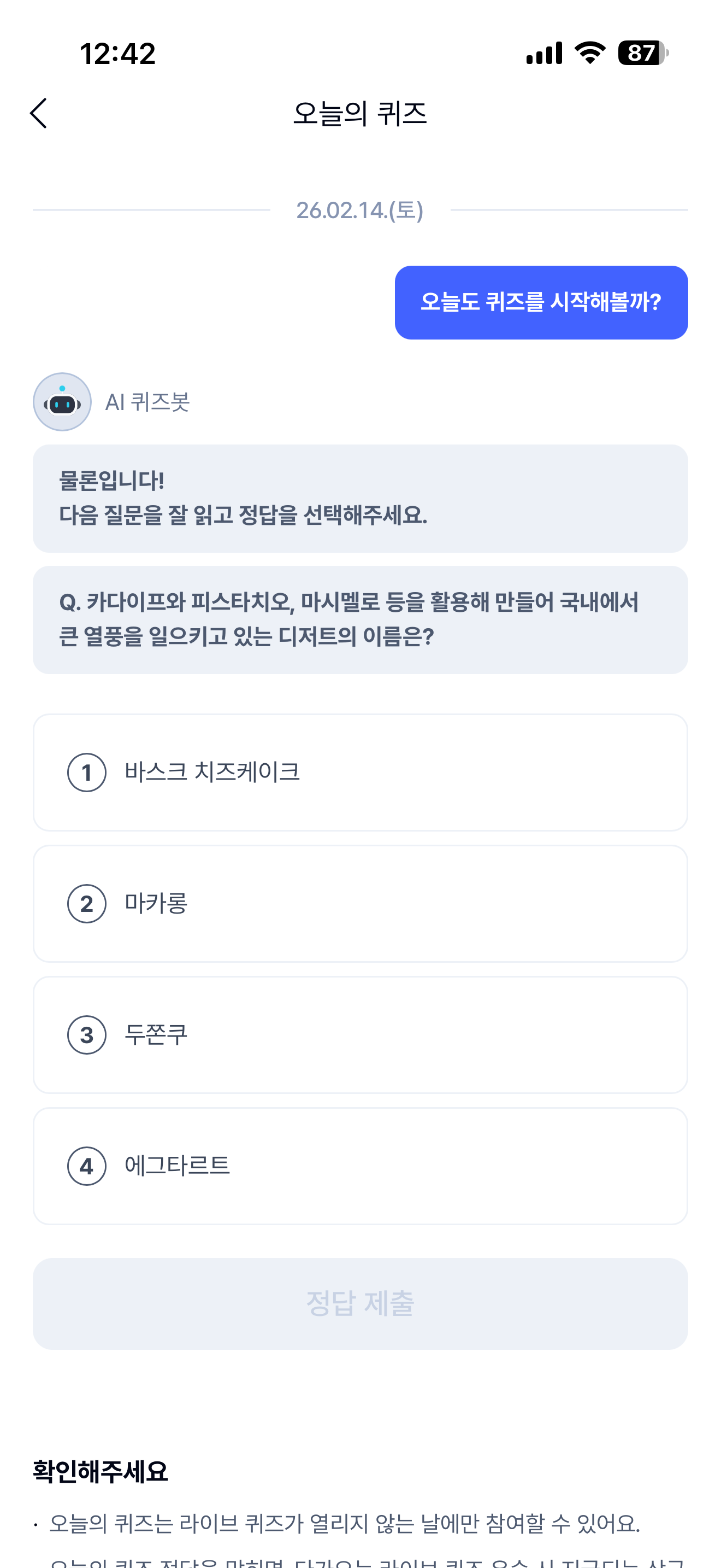 케이뱅크 AI퀴즈 챌린지 정답은 두쫀쿠 입니다