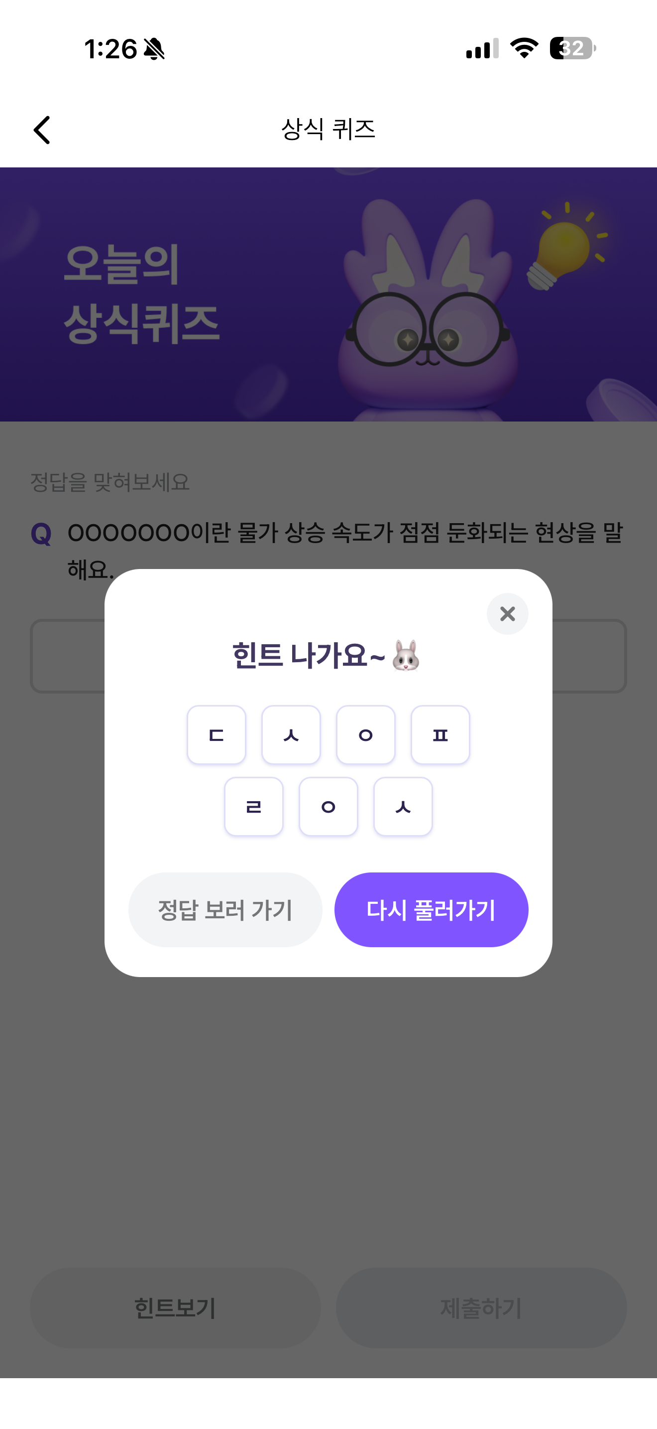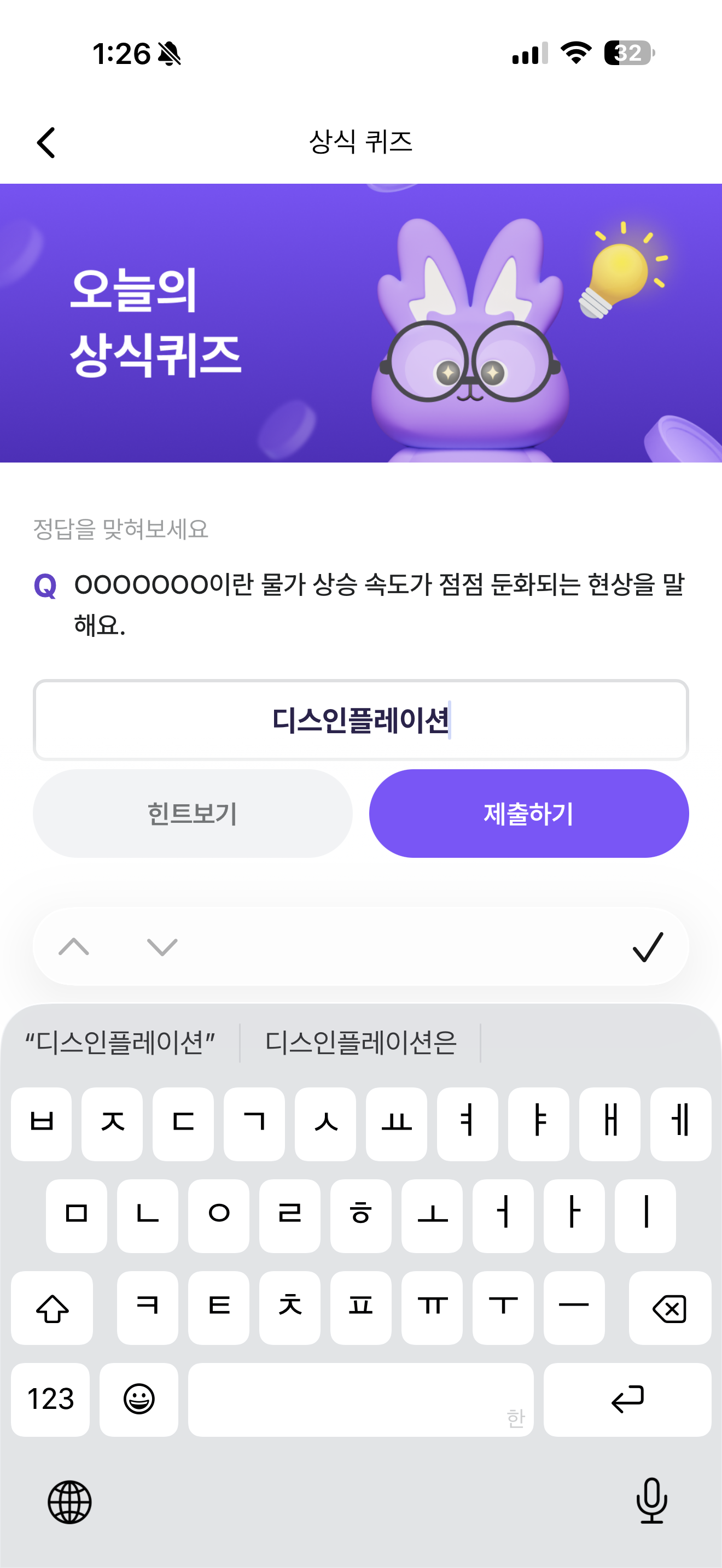 비트버니 오늘의 퀴즈 정답은 디스인플레이션 입니다