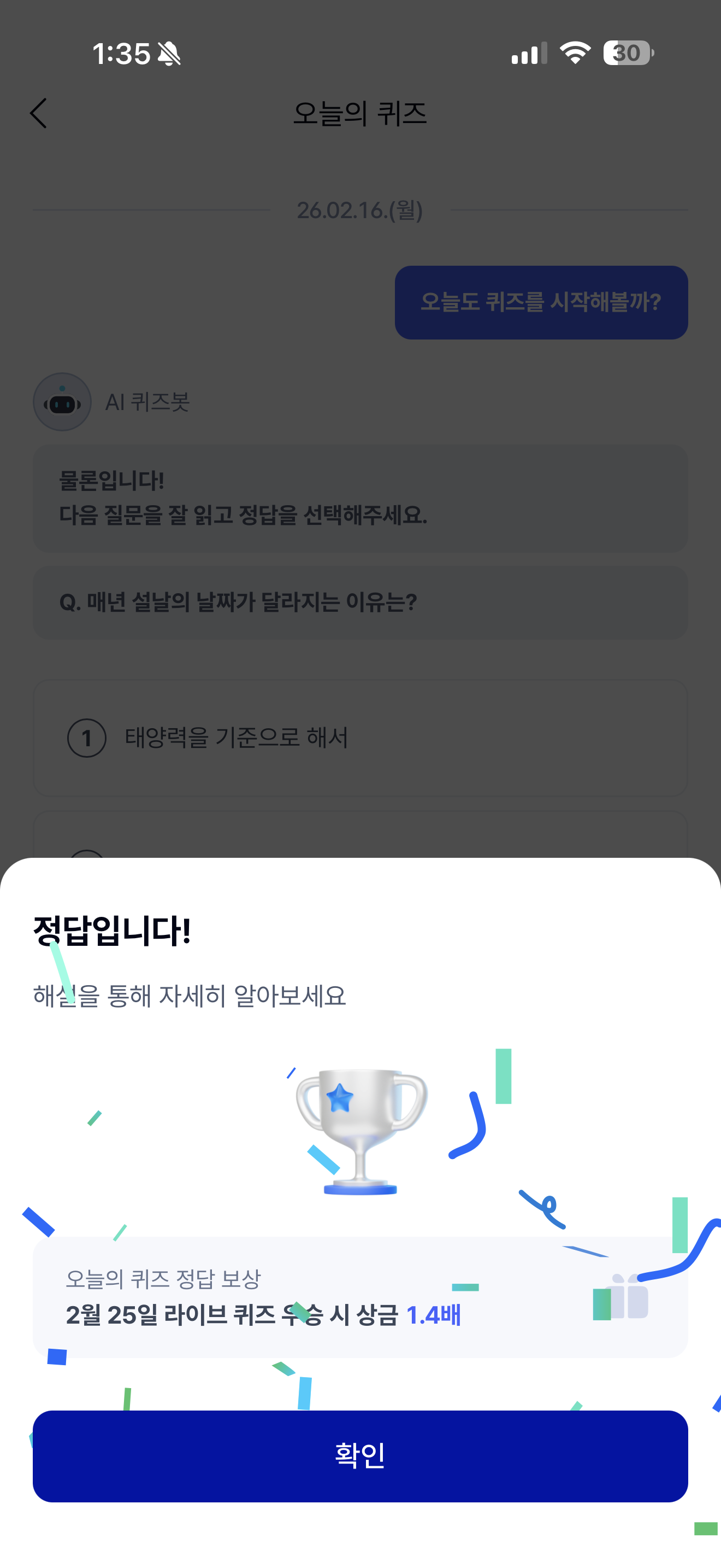 케이뱅크 AI 퀴즈 챌린지 정답은 음력을 기준으로 하기 때문에 입니다