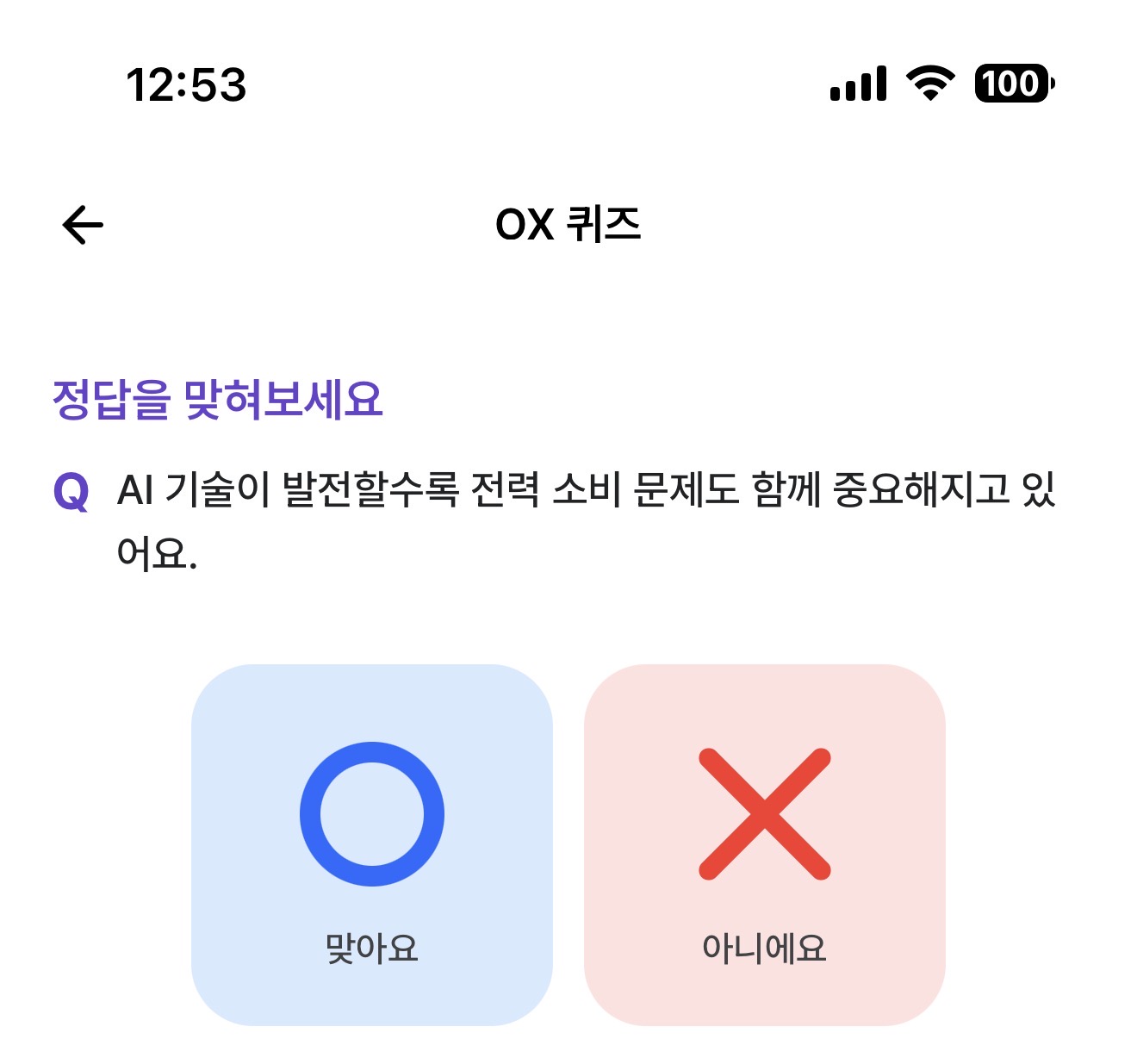 AI 기술이 발전할수록 전력 소비 문제도 함께 중요해지고 있어요 O, X 퀴즈인데요. AI 기술이 발전하면 전력 소비 문제가 커질까요? AI 기술은 데이터를 더 많이 사용하게 되고 그래픽 카드, 메모리 등 다양한 도구들이 활용되게 됩니다.
