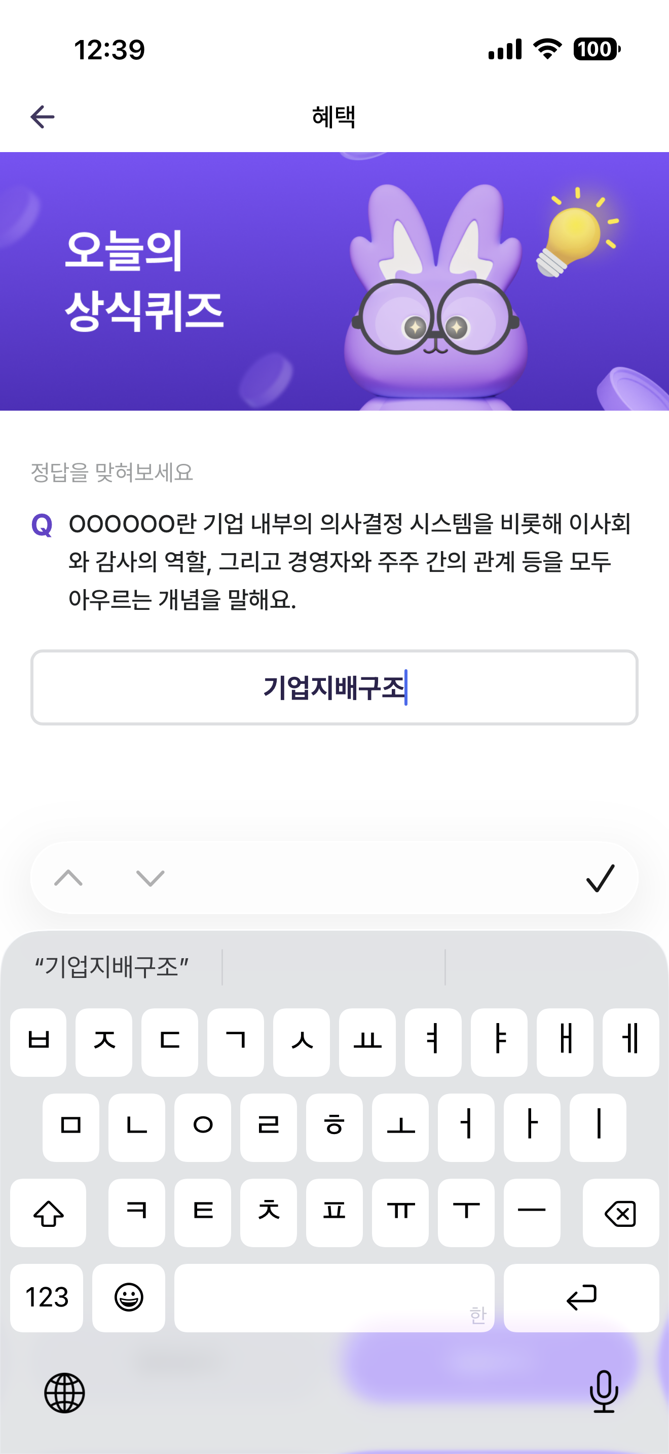 비트버니 오늘의 퀴즈 2월 18일 ㄱㅇㅈㅂㄱㅈ 정답(OOOOOO란 기업 내부의 의사결정 시스템을 비롯해 이사회와 감사의 역할, 그리고 경영자와 주주 간의 관계 등을 모두 아우르는 개념을 말해요)