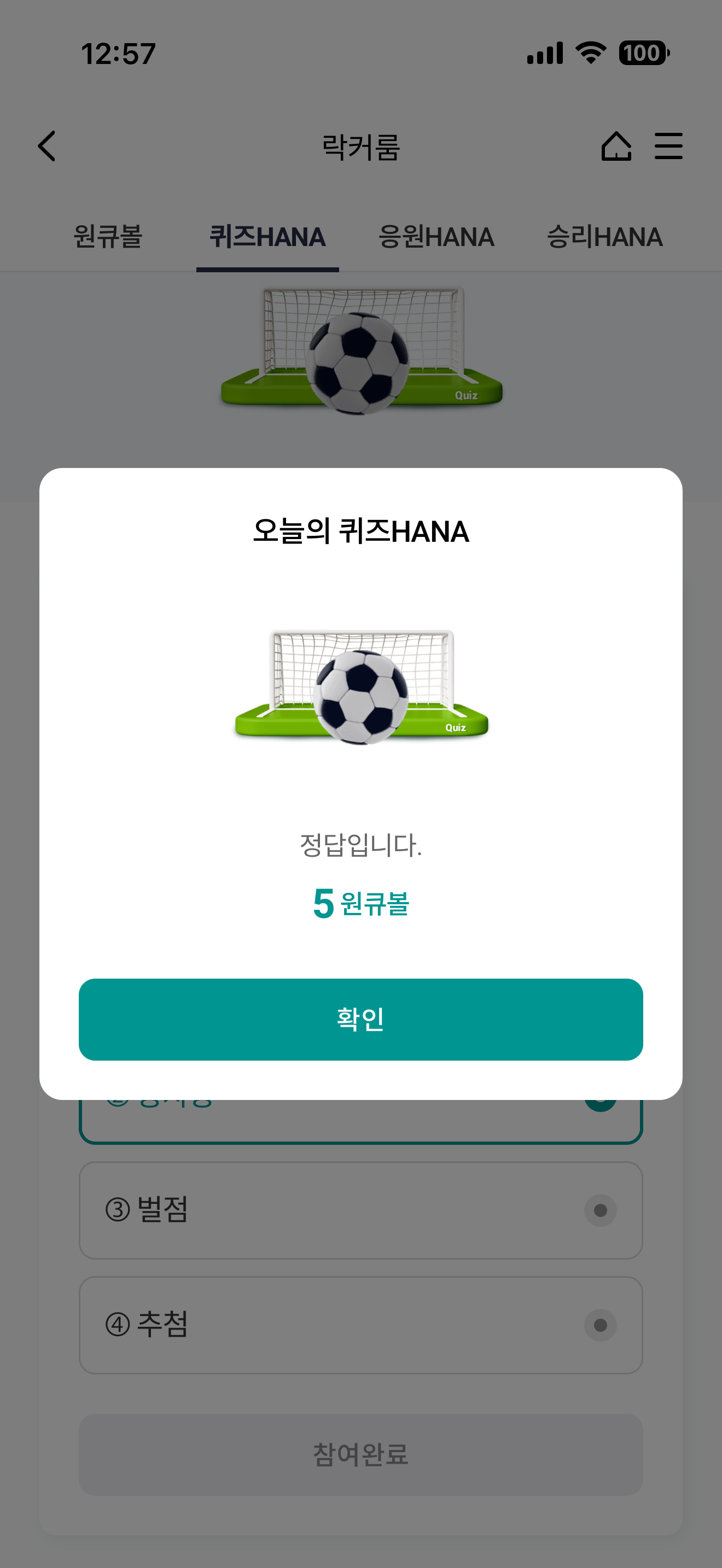 하나원큐 축구 play 퀴즈 HANA 정답은 승자승 입니다