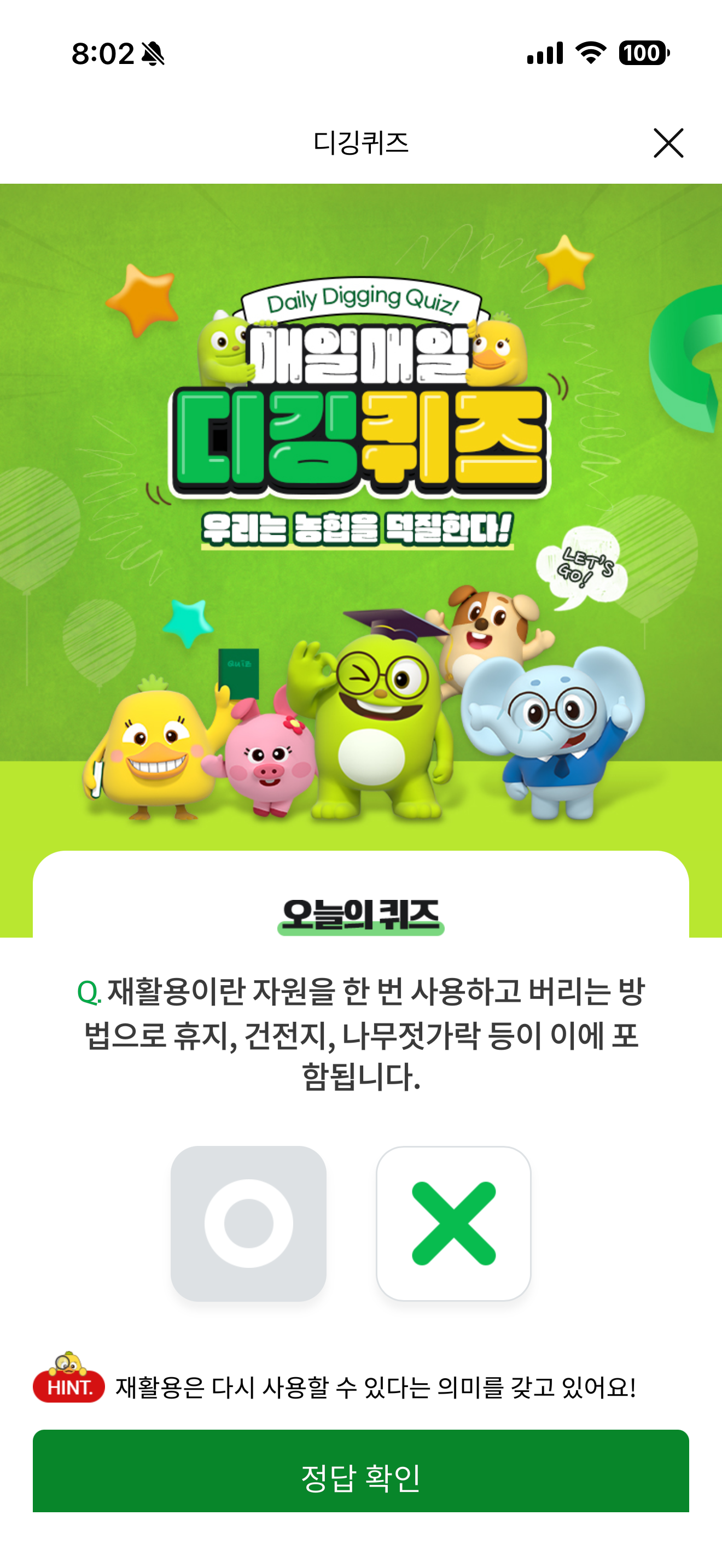 NH올원뱅크 디깅퀴즈 정답은 X 입니다