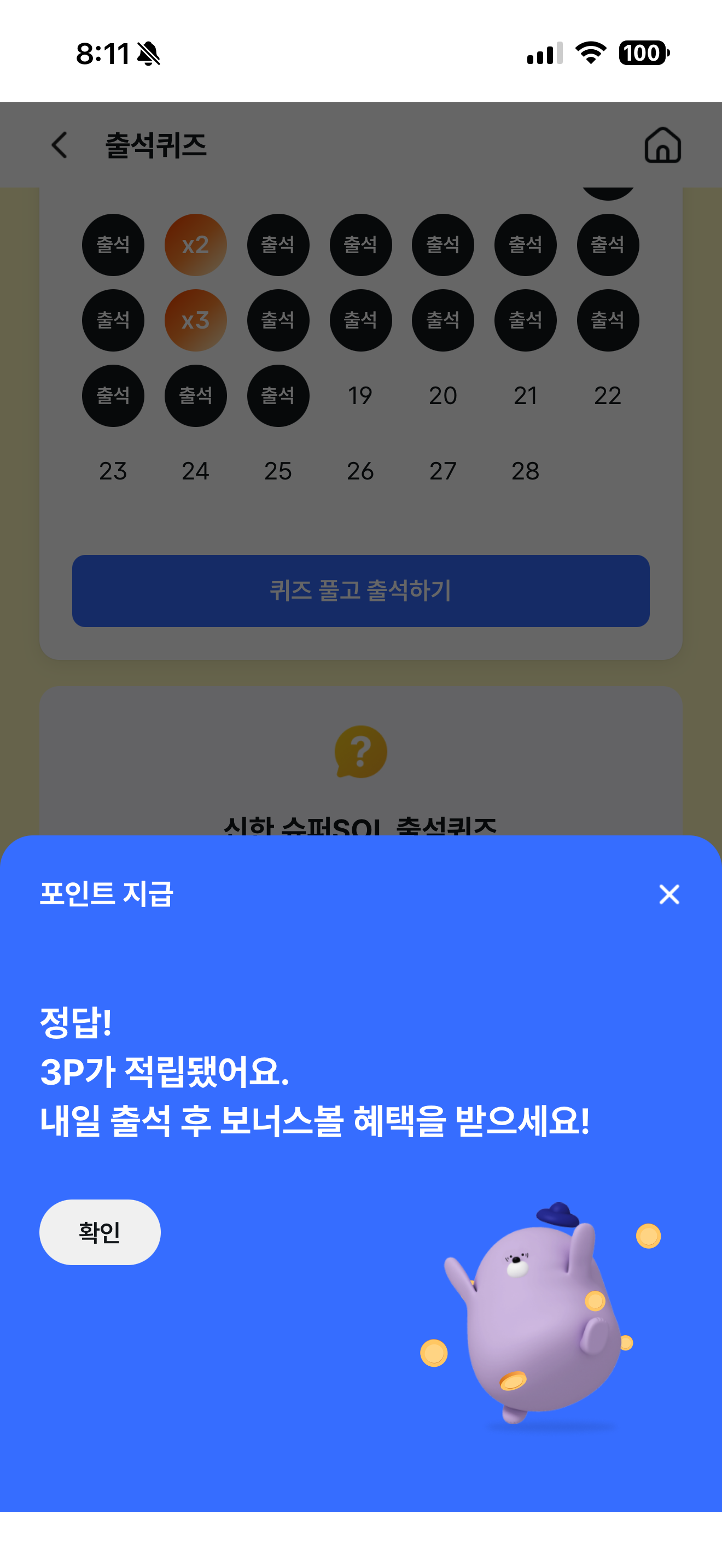 신한 슈퍼SOL 출석퀴즈 2월 19일 문제입니다