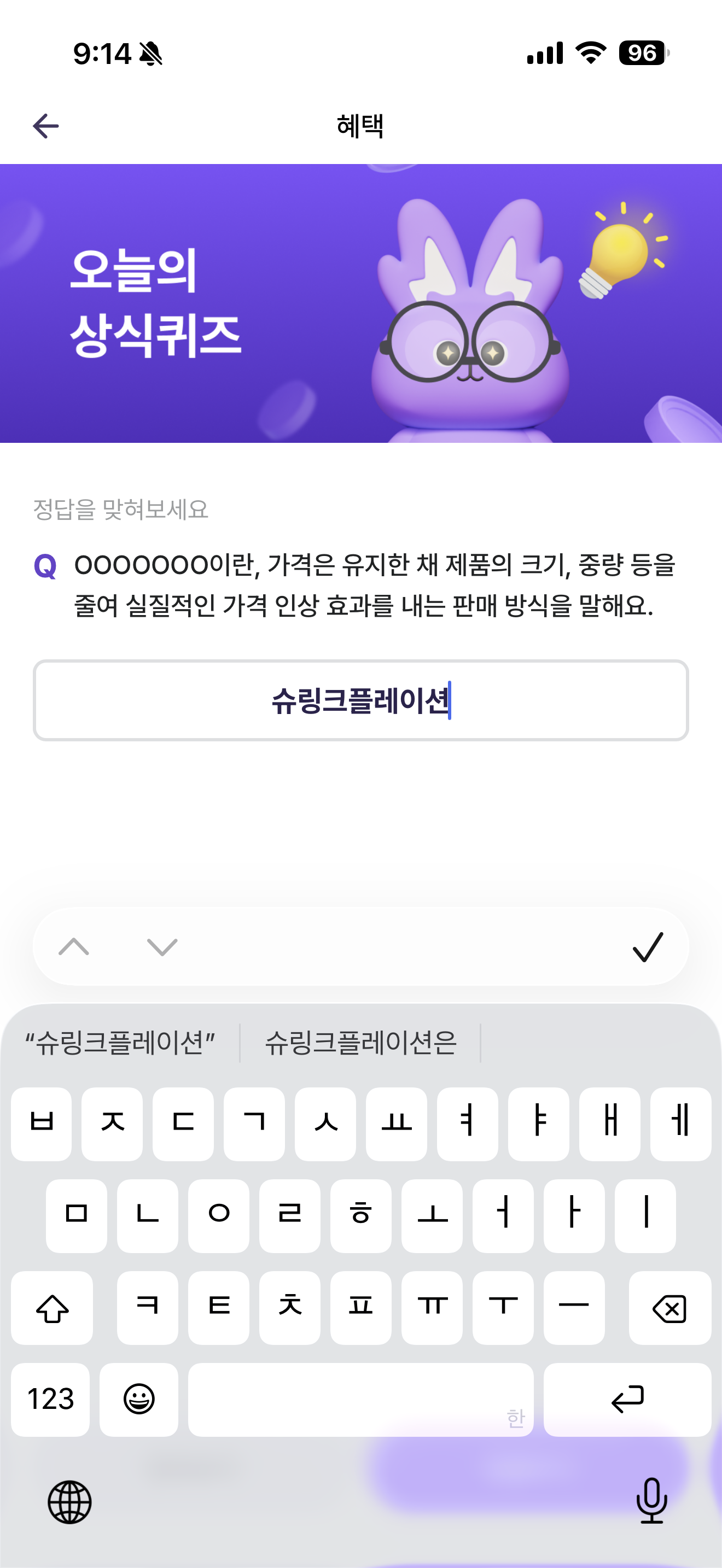 비트버니 오늘의 퀴즈 정답은 슈링크플레이션 입니다