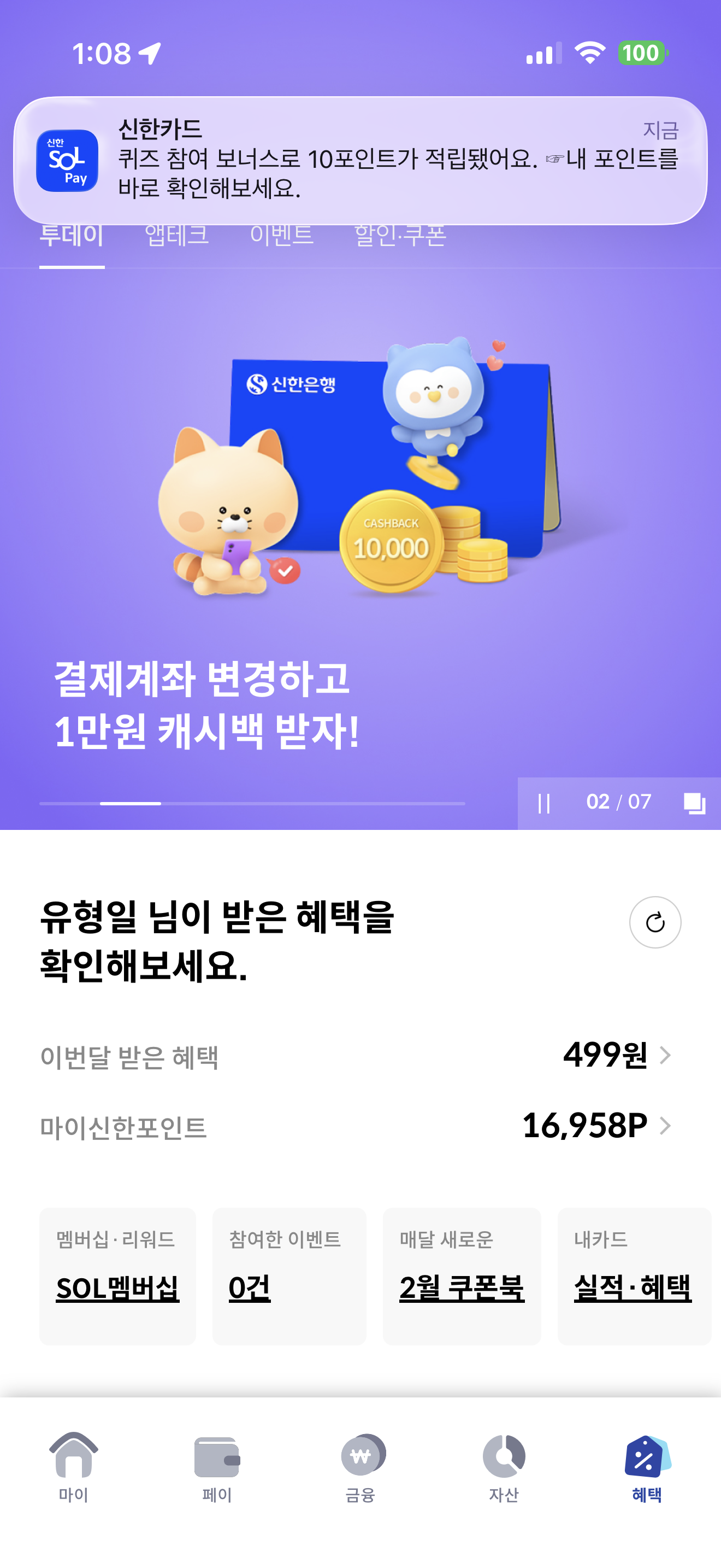 신한카드 퀴즈팡팡 2월 20일 문제입니다