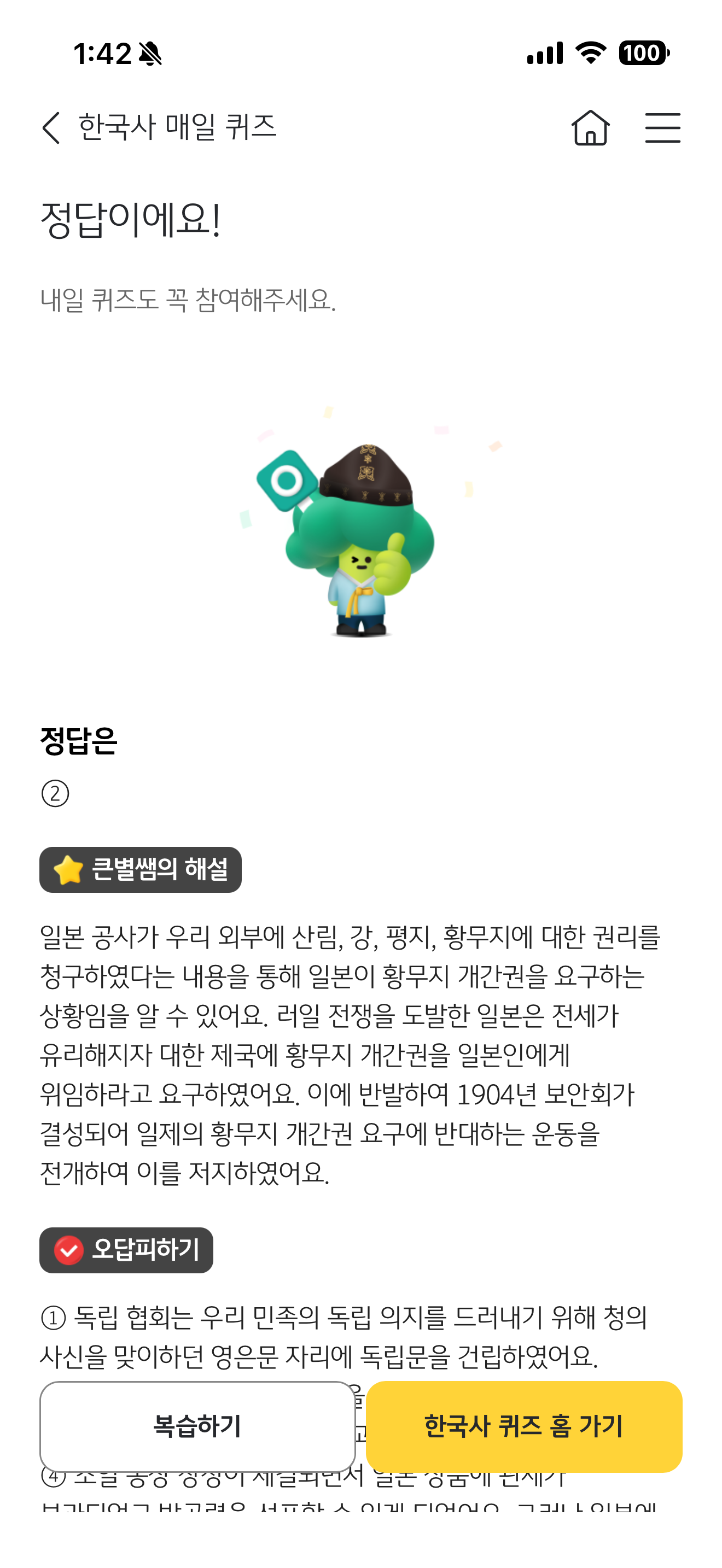KB스타배잉 한국사 매일 퀴즈 2월 20일 문제입니다