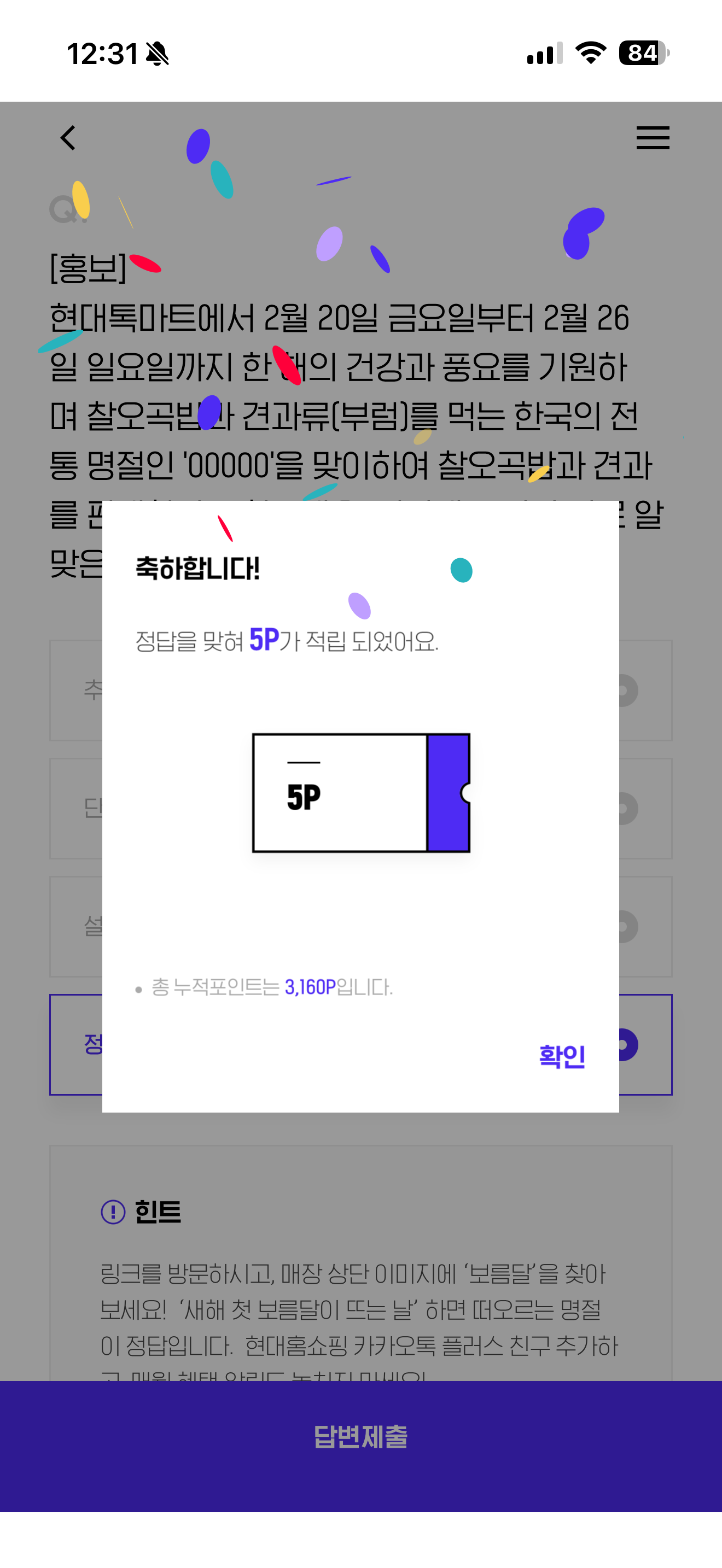H포인트 퀴즈 정답은 정월대보름 입니다