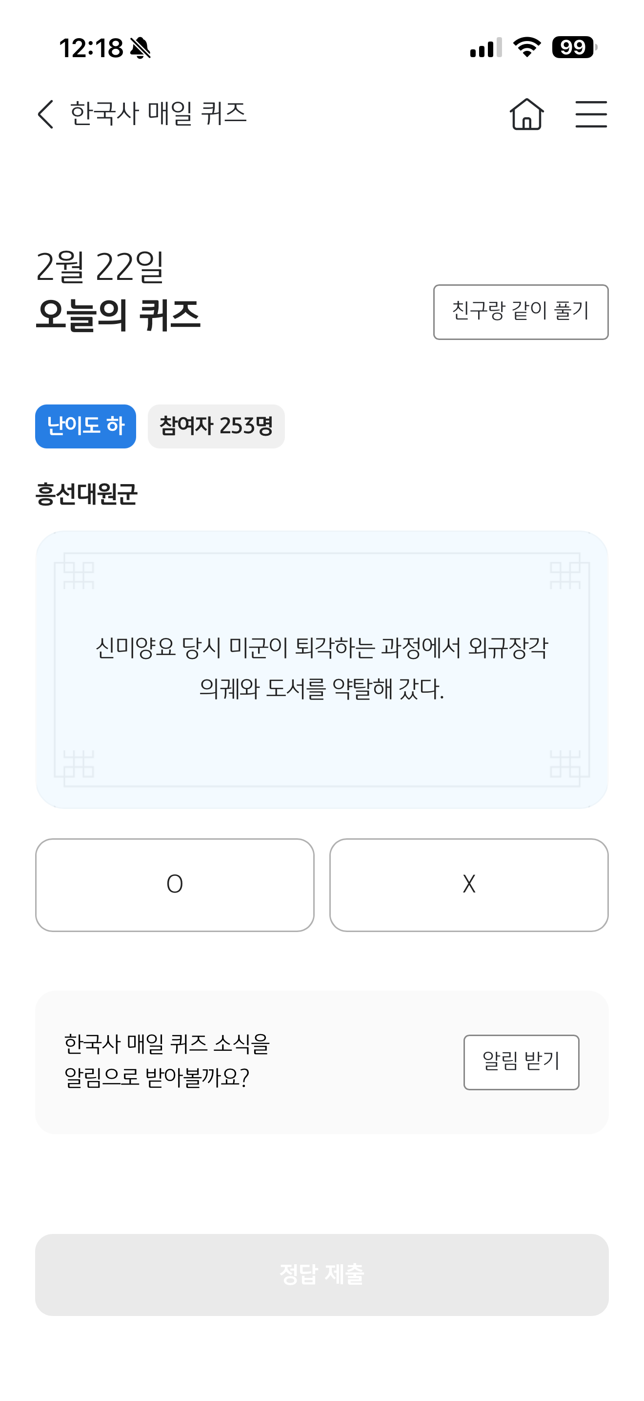 KB스타뱅킹 한국사 매일 퀴즈 정답은 X 입니다
