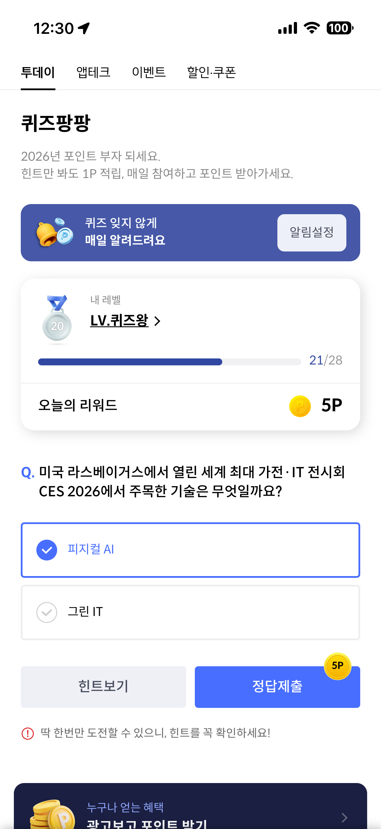 신한카드 퀴즈팡팡 정답은 피지컬 AI 입니다