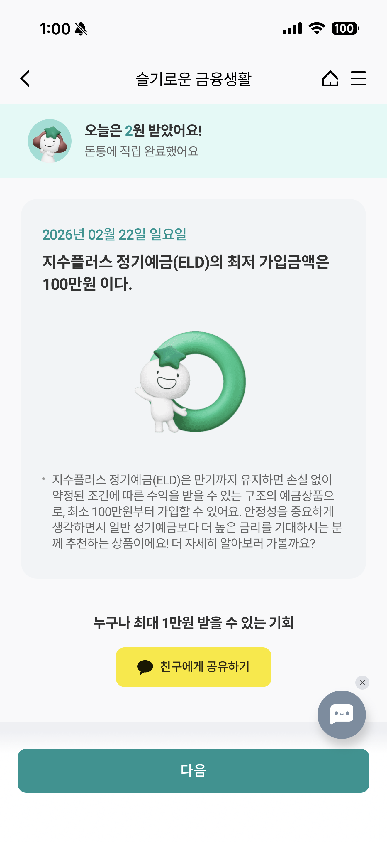 지수플러스 정기예금(ELD)의 최저 가입금액은 100만원 이다 O, X 퀴즈인데요. 지수플러스가 뭘까요? 정기예금의 최저 가입금액도 있을까요? 잘 참고해서 상식으로 알아두세요