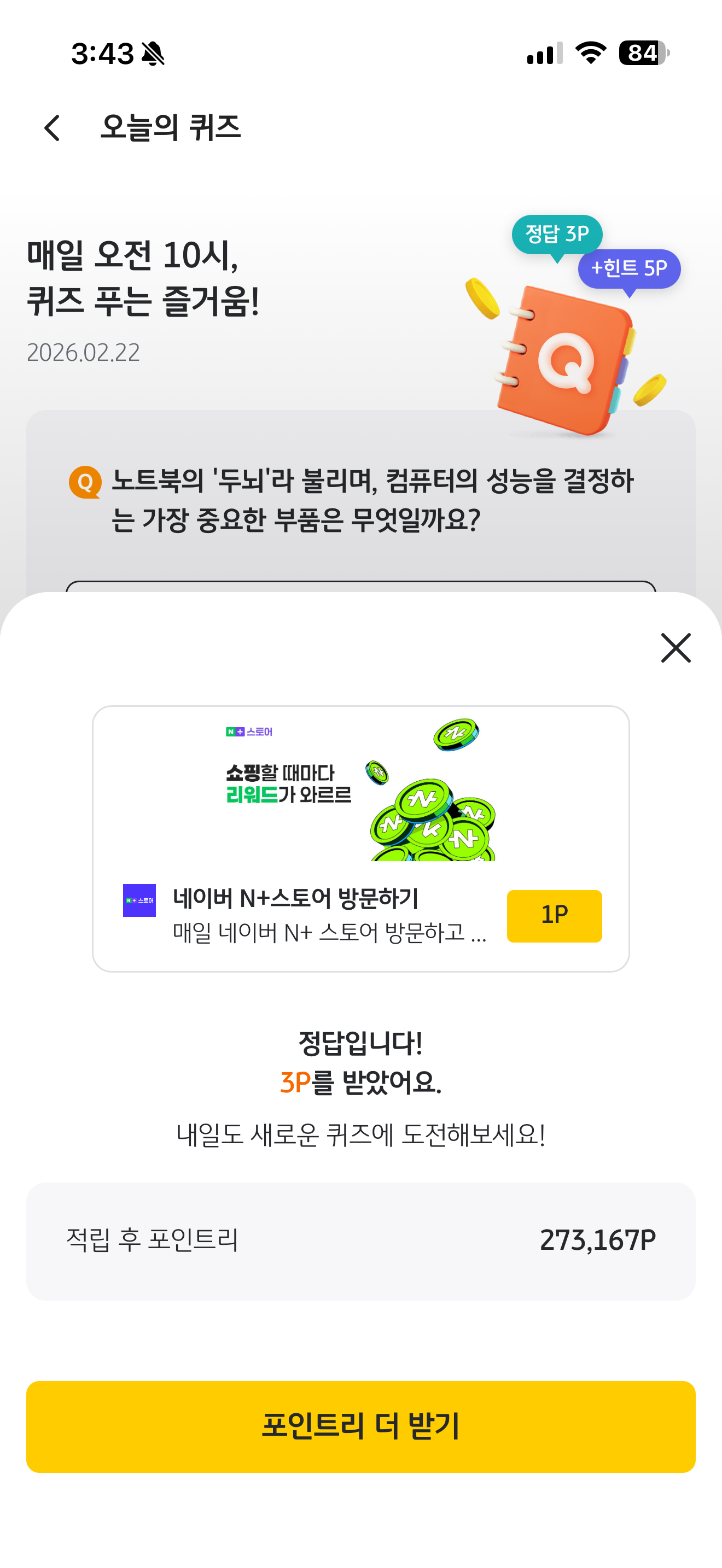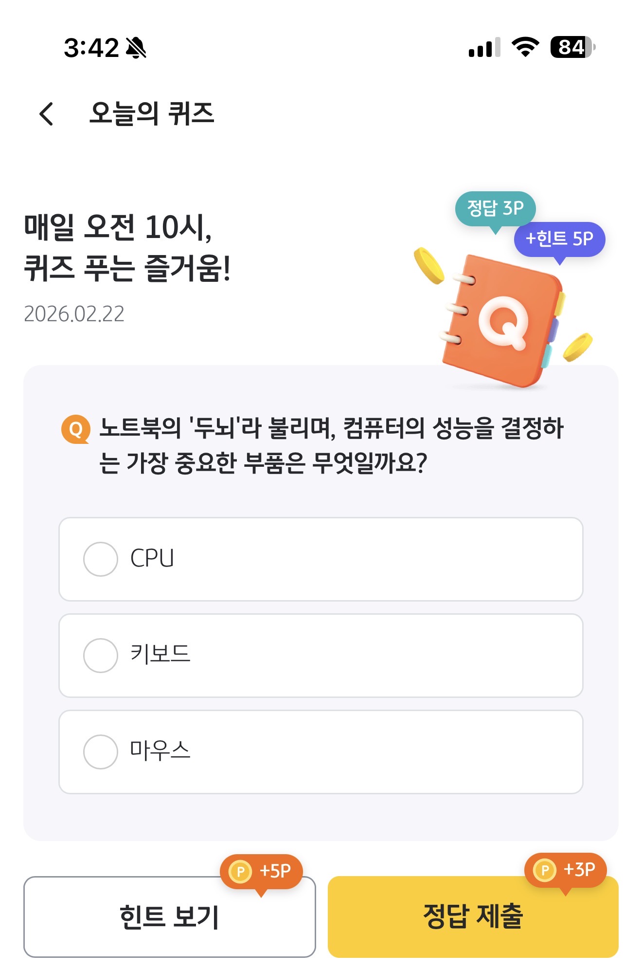 KB Pay 오늘의 퀴즈 정답은 CPU 입니다