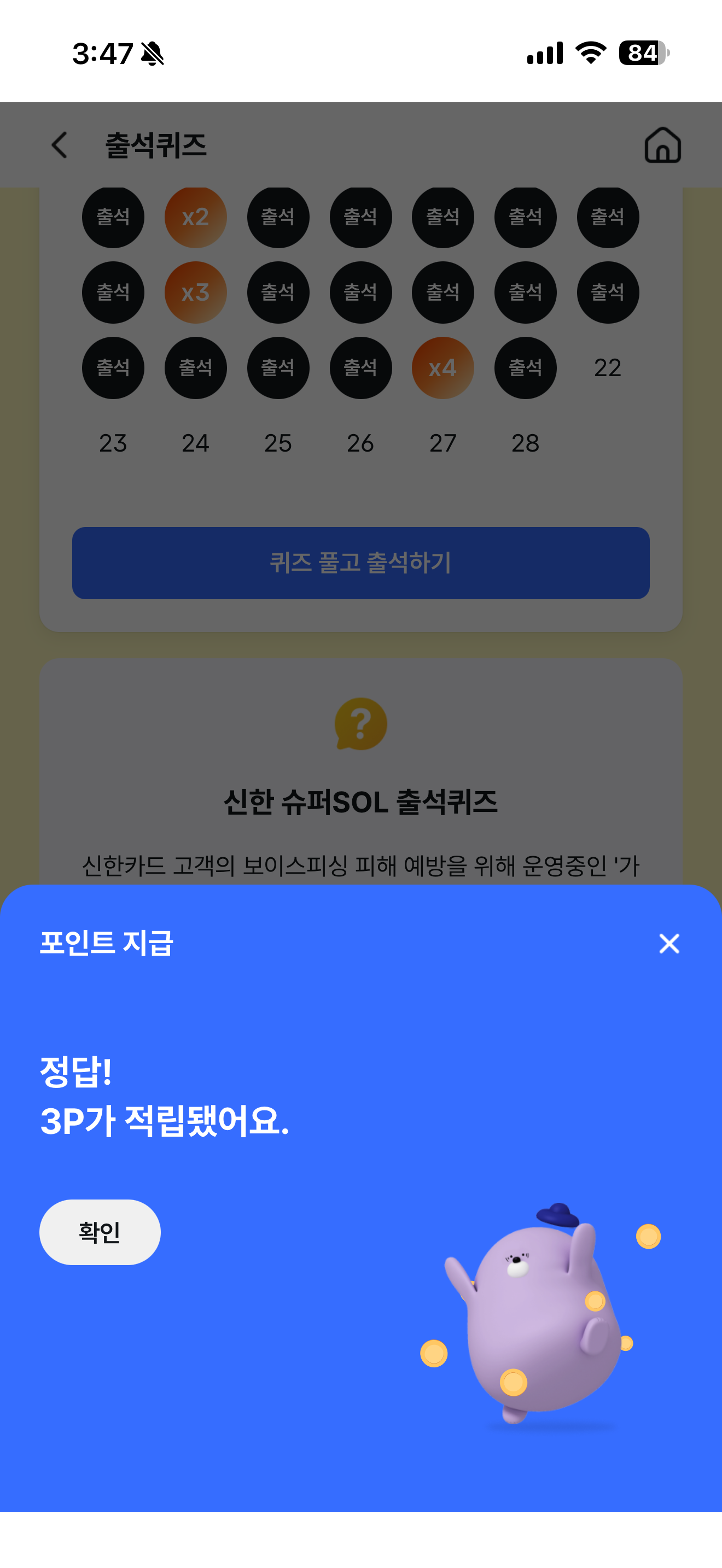신한 슈퍼SOL 출석퀴즈 정답은 무료 입니다