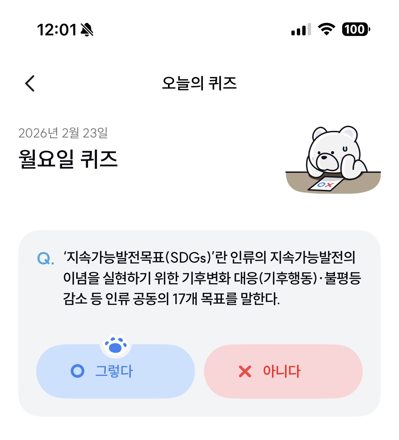 기후행동 기회소득 오늘의 퀴즈 정답은 그렇다 입니다