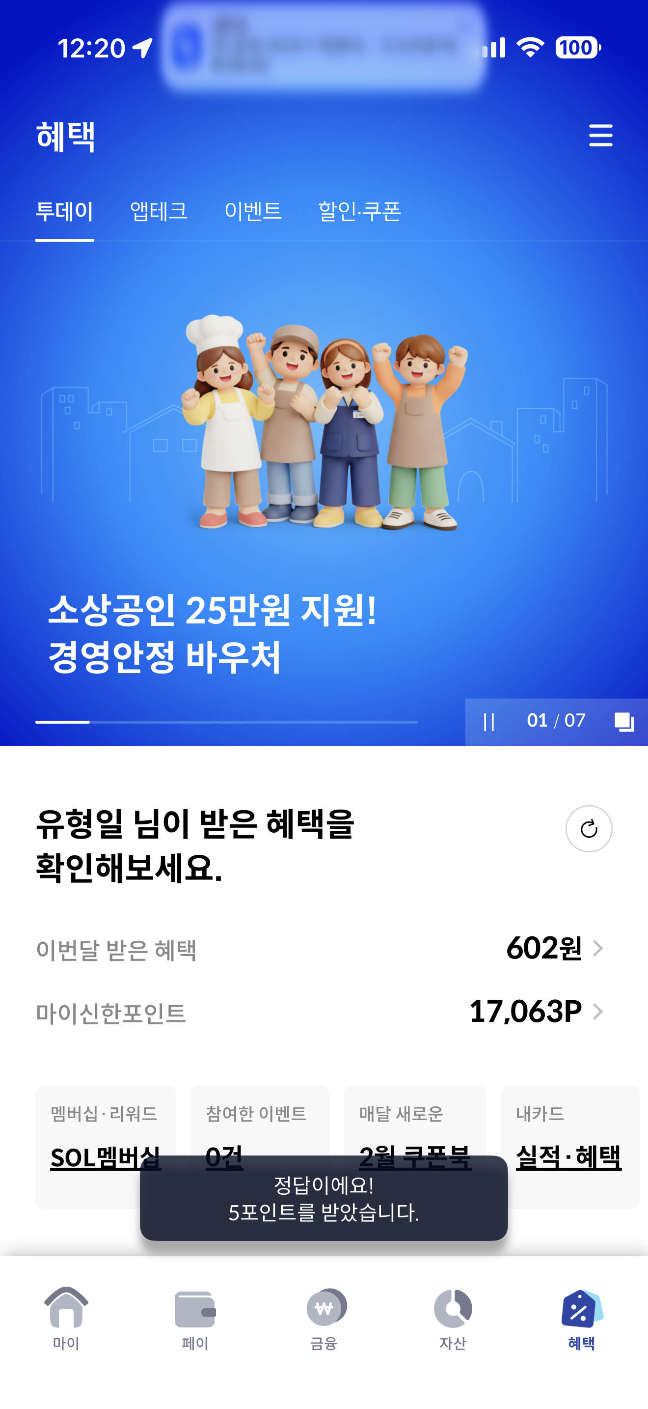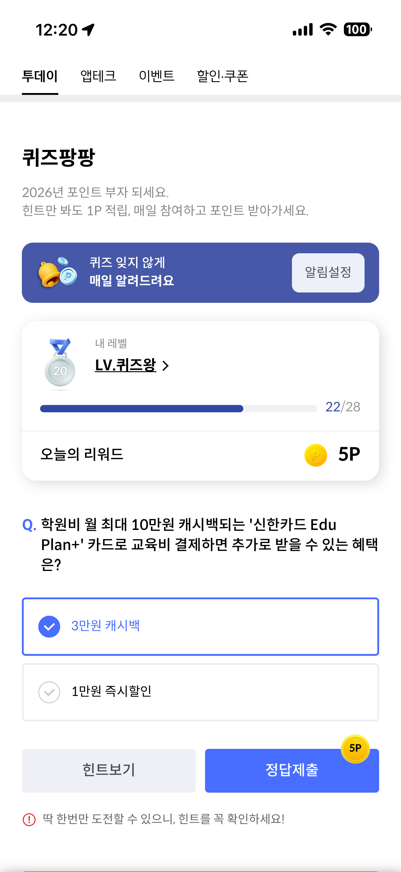 신한카드 퀴즈팡팡 정답은 3만원 캐시백 입니다