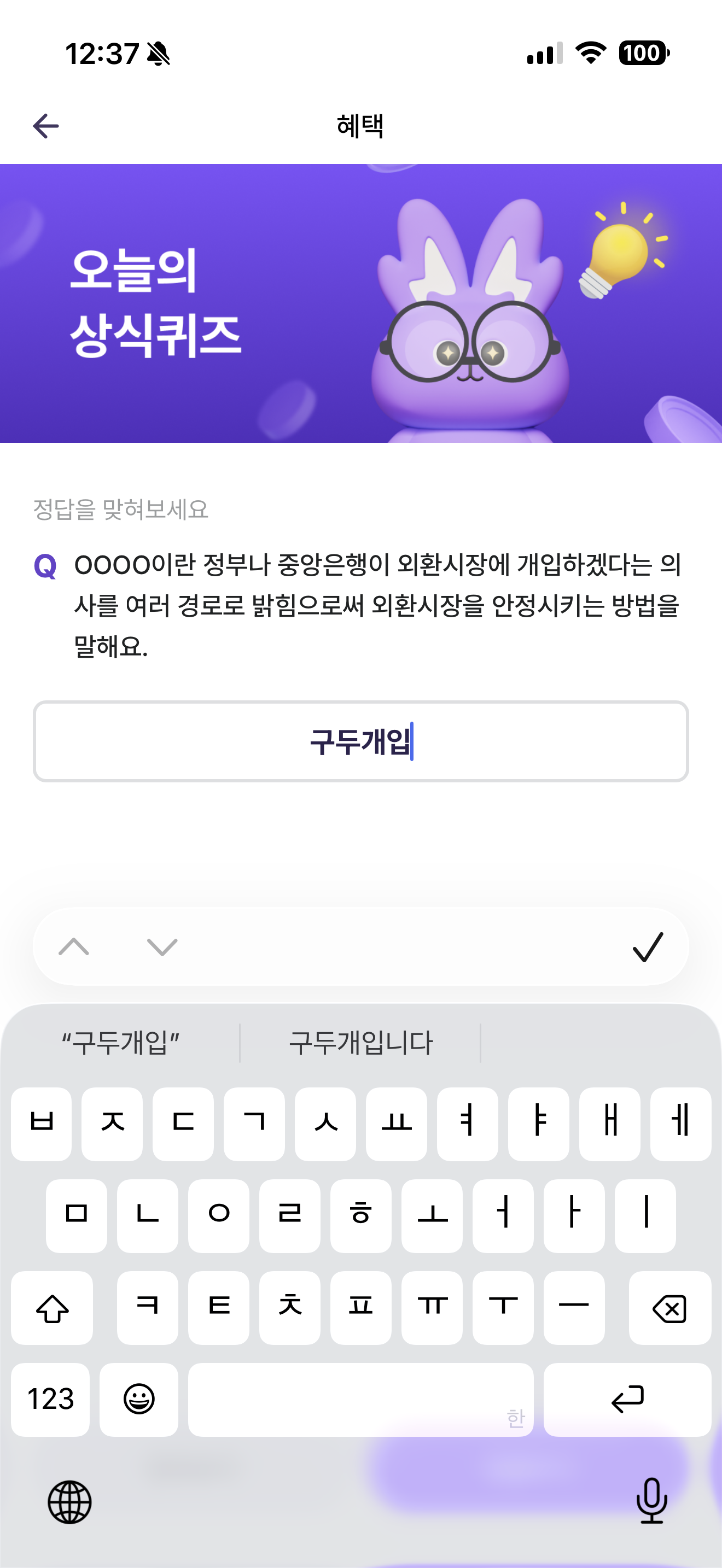 비트버니 오늘의 퀴즈 정답은 구두개입 입니다
