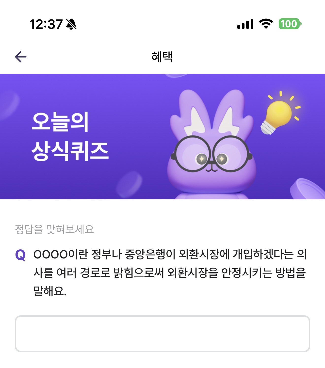 비트버니 오늘의 퀴즈 정답은 구두개입 입니다