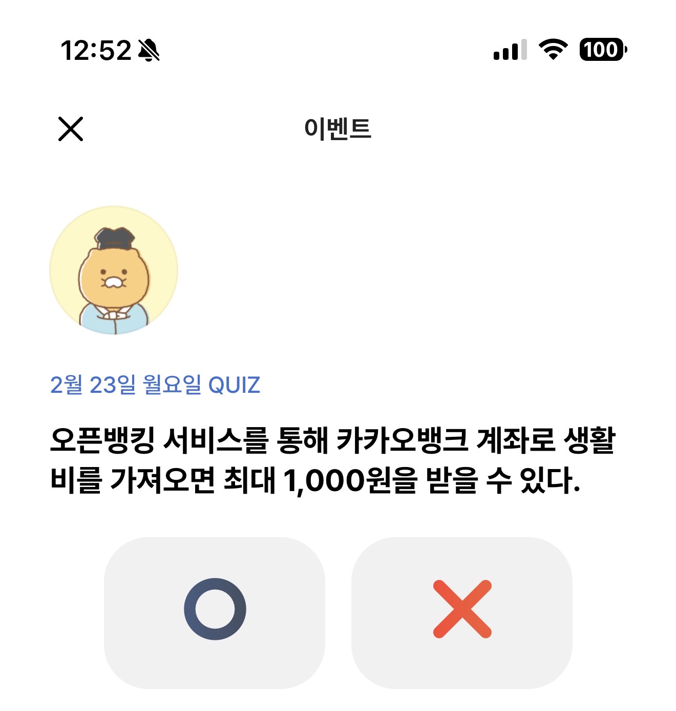 카카오뱅크 OX 퀴즈 2월 23일 문제입니다