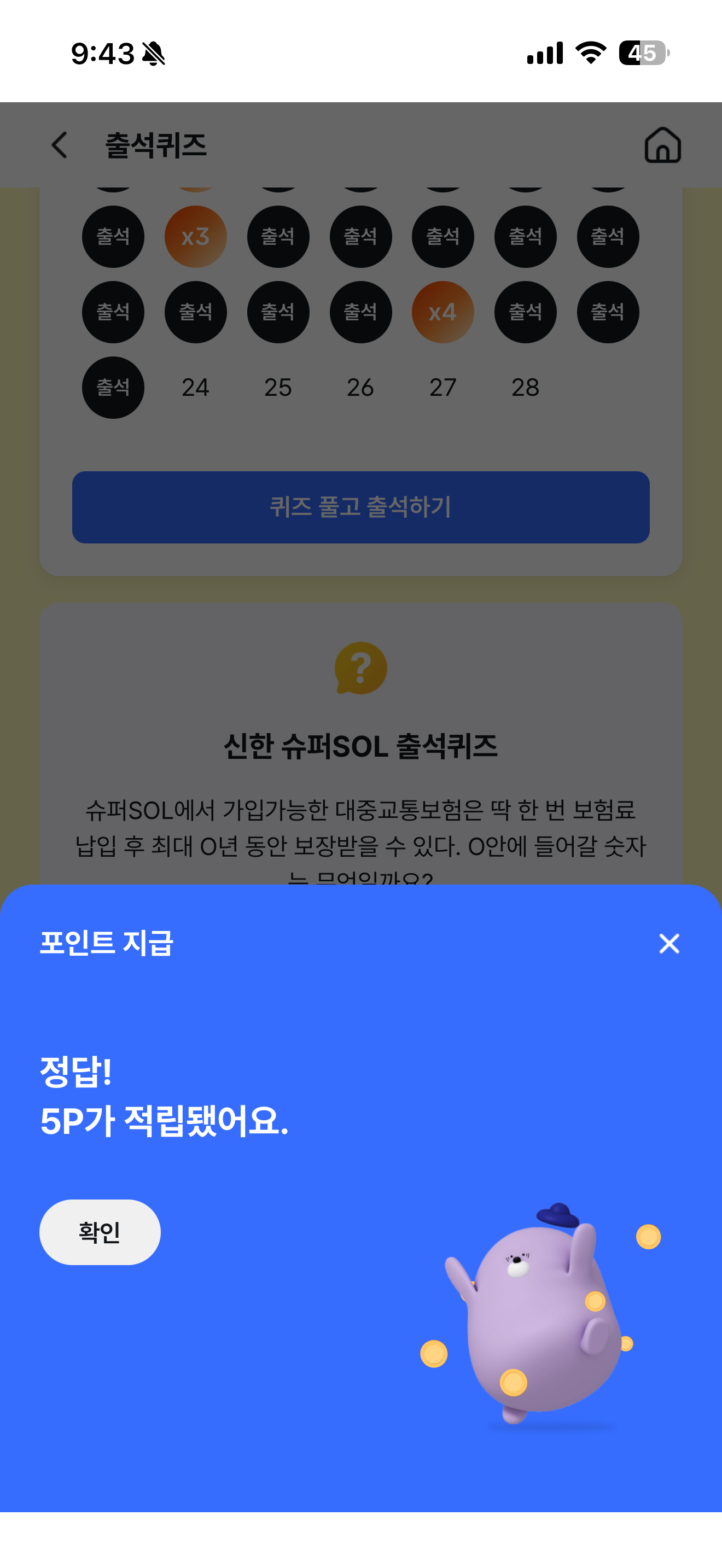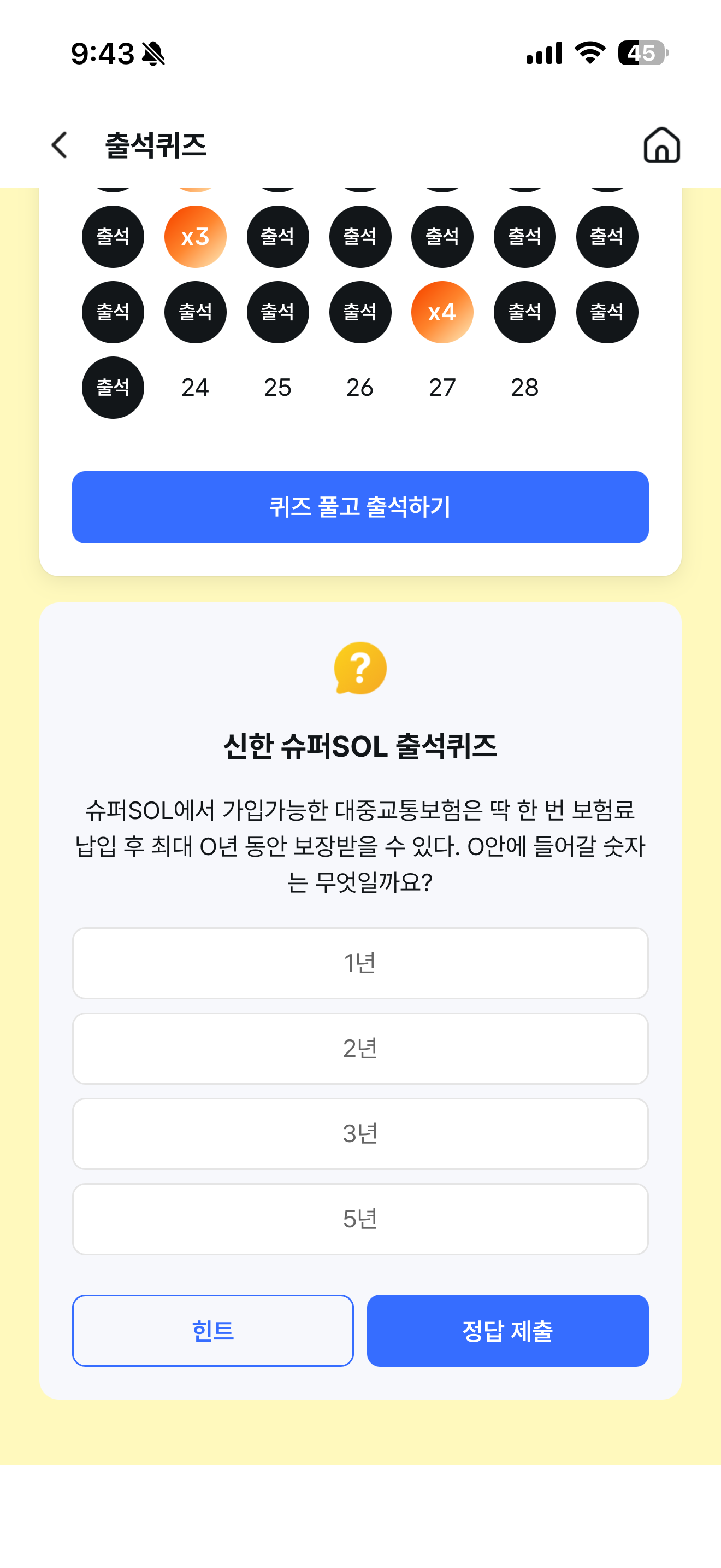 신한 슈퍼SOL 출석퀴즈 정답은 3년 입니다