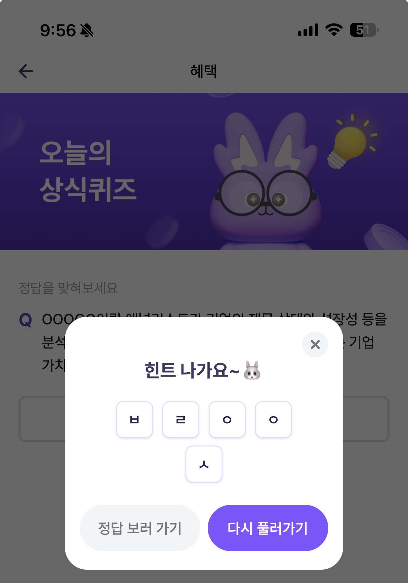 비트버니 오늘의 퀴즈 초성 힌트는 ㅂㄹㅇㅇㅅ 입니다