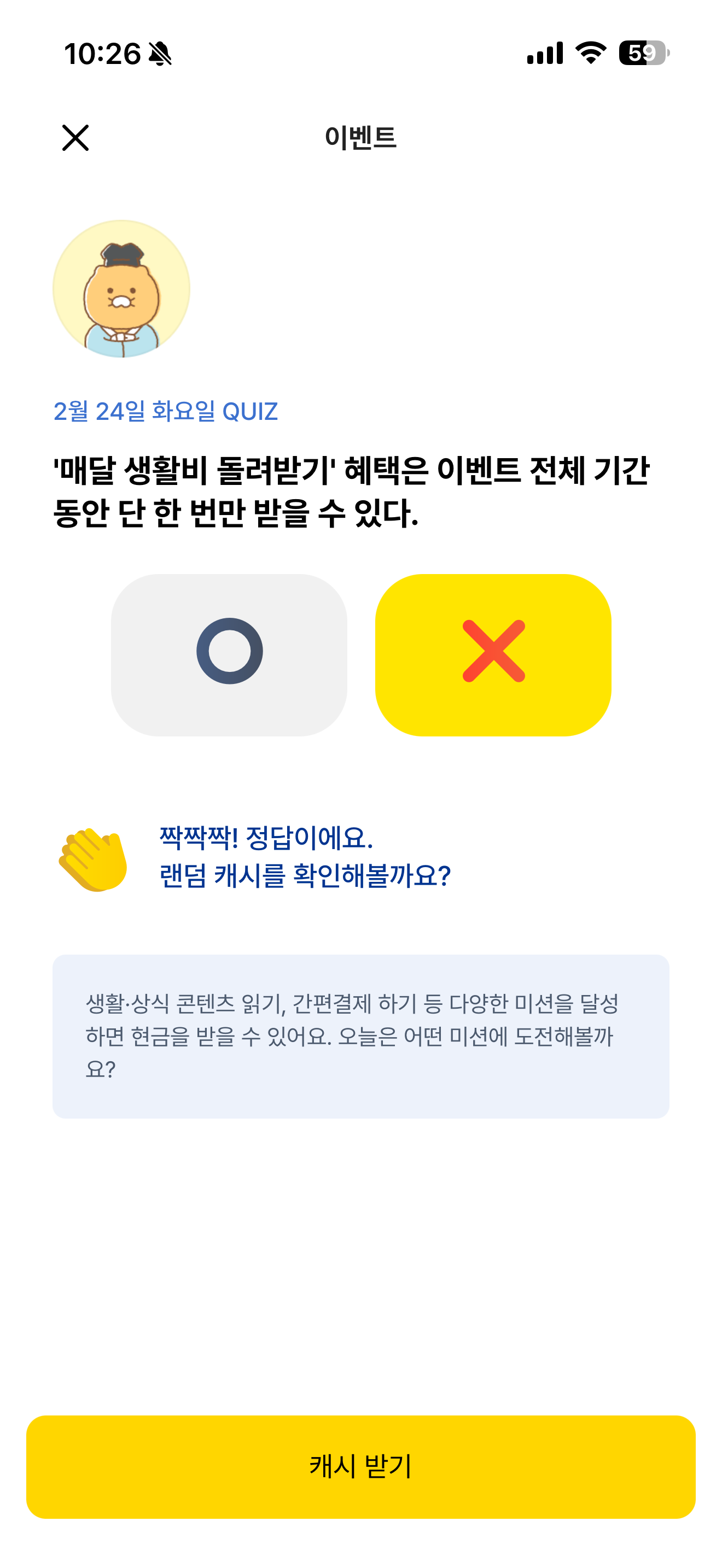카카오뱅크 OX 퀴즈 정답은 X 입니다