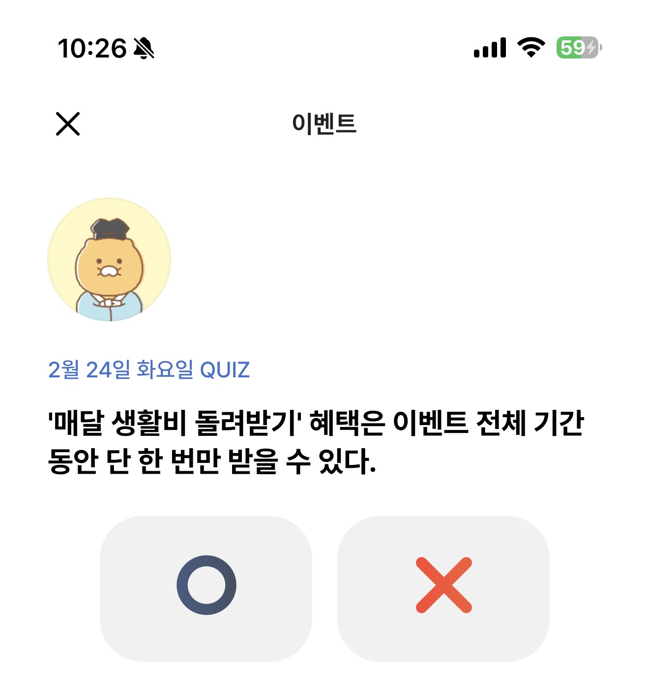카카오뱅크 OX 퀴즈 정답은 X 입니다