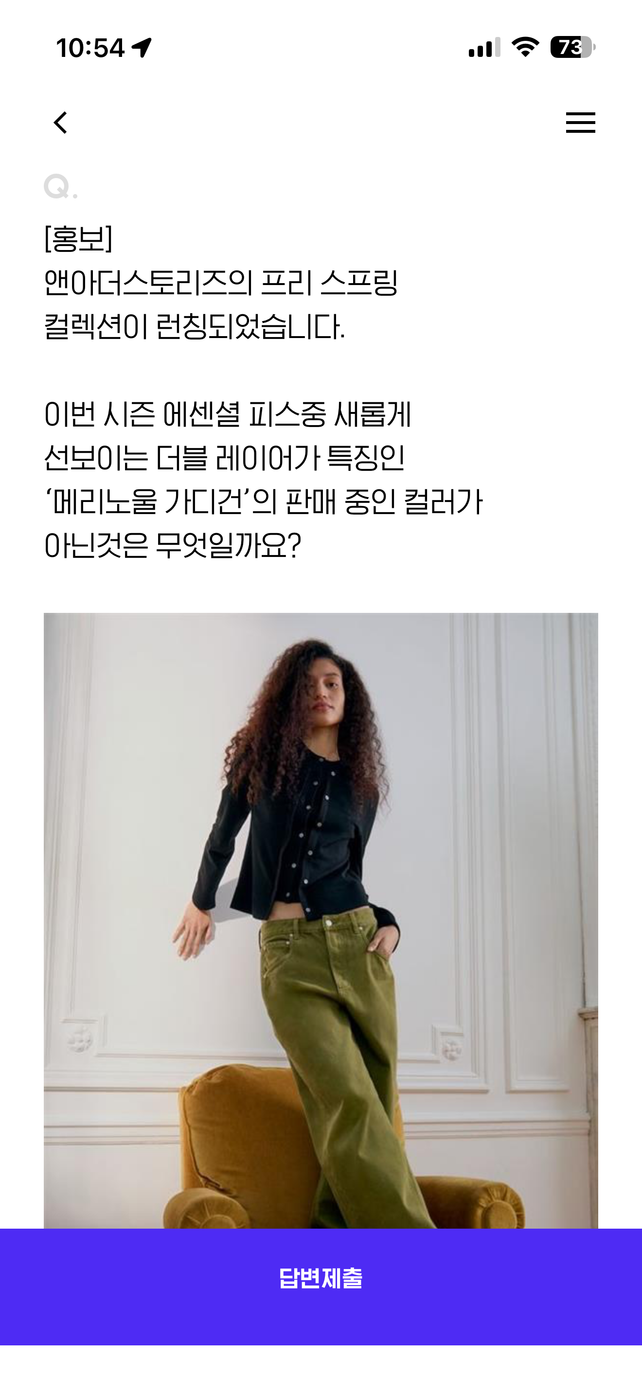 앤아더스토리즈의 프리 스프링 컬렉션이 런칭되었습니다. 이번 시즌 에센셜 피스중 새롭게 선보이는 더블 레이어가 특징인 '메리노울 가디건'의 판매 중인 컬러가 아닌것은 무엇일까요?