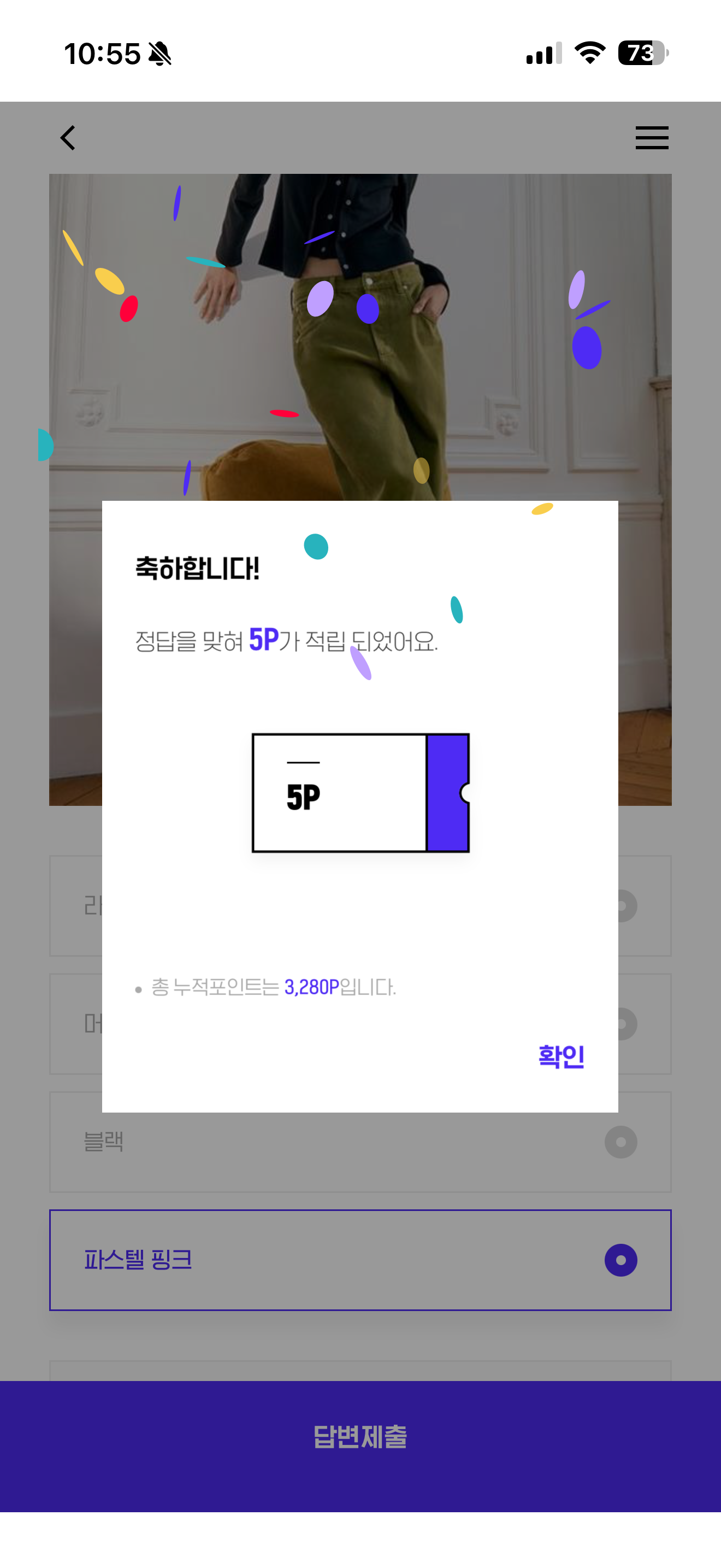 H포인트 퀴즈 정답은 파스텔 핑크 입니다