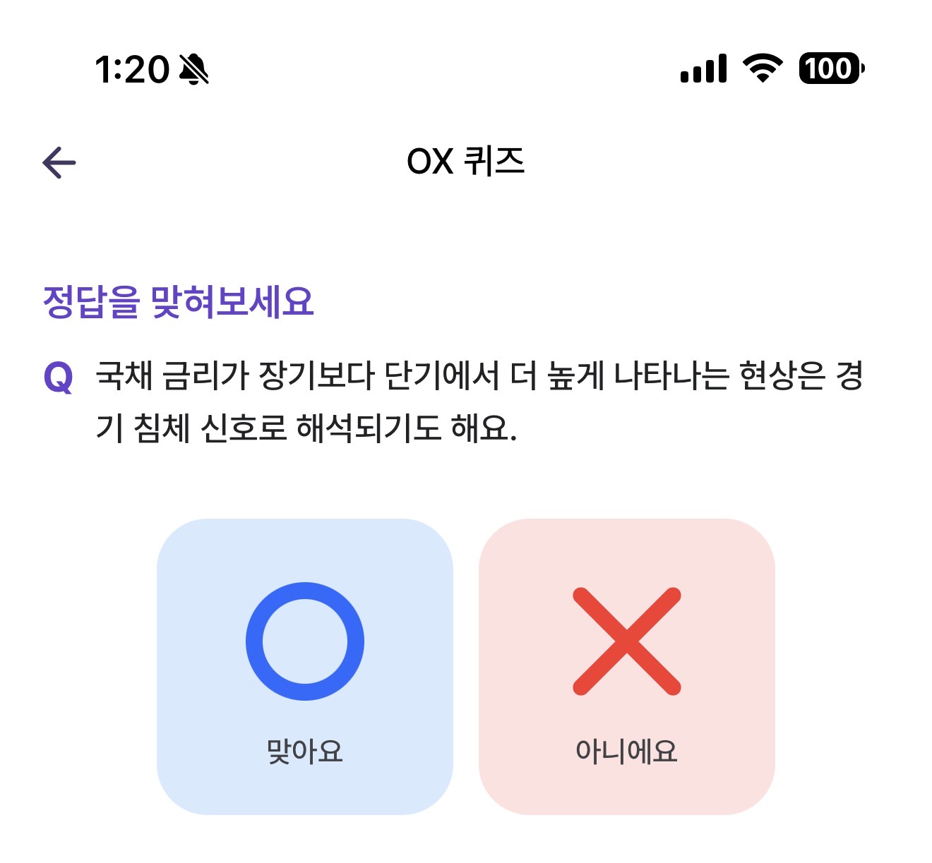 비트버니 OX 퀴즈 2월 25일 정답(국채 금리가 장기보다 단기에서 더 높게 나타나는 현상은 경기 침체 신호로 해석되기도 해요)