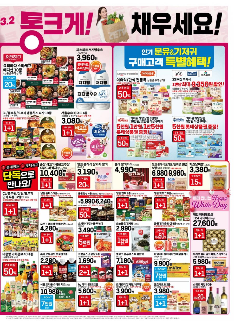 2월 26일부터 3월 4일까지 롯데마트 통크데이 행사를 합니다. 전단지 할인 행사 내용 잘 참고해서 쇼핑에 활용하세요