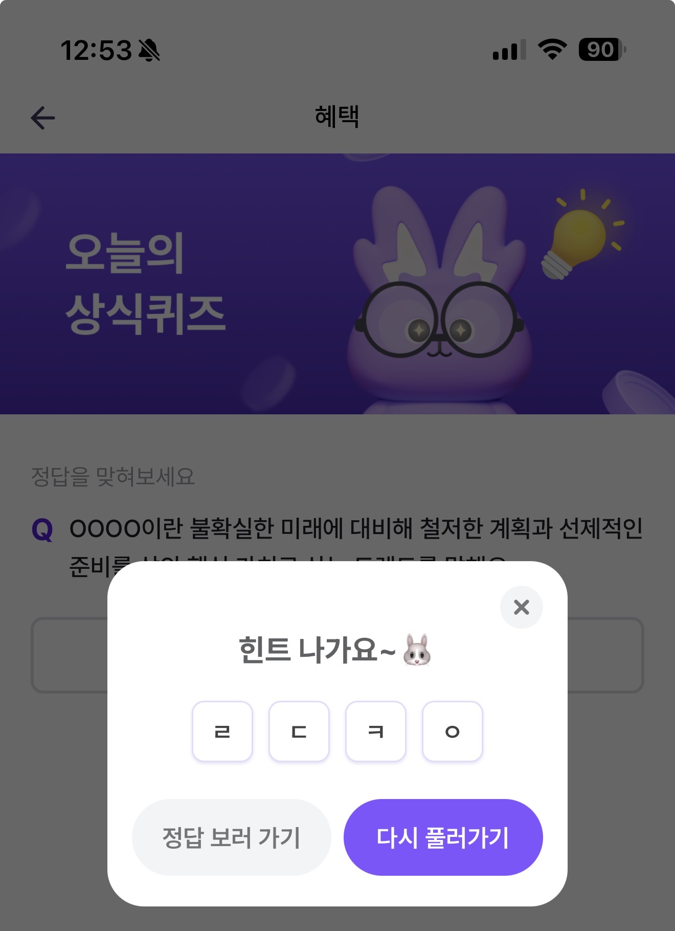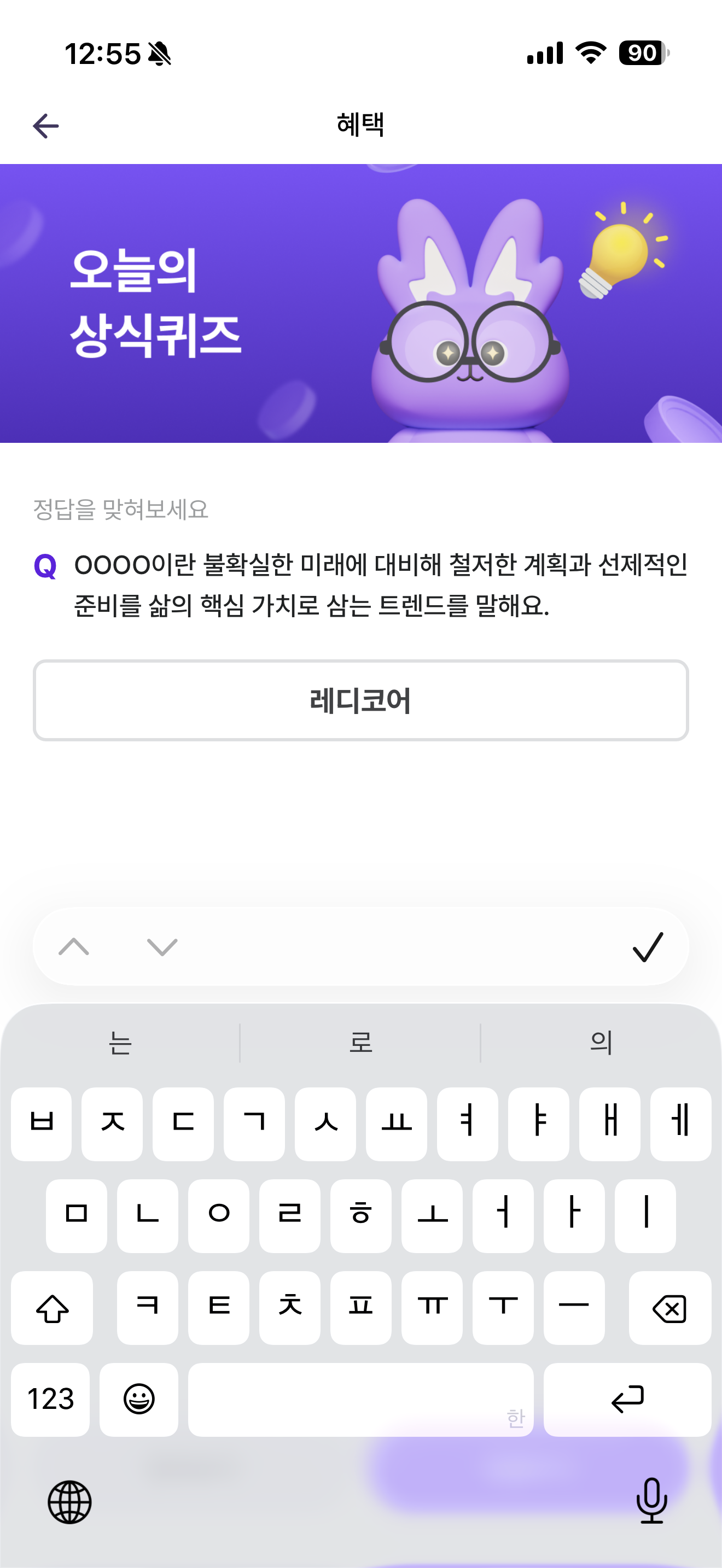 비트버니 오늘의 퀴즈 2월 28일 ㄹㄷㅋㅇ 정답(OOOO이란 불확실한 미래에 대비해 철저한 계획과 선제적인 준비를 삶의 핵심 가치로 삼는 트렌드를 말해요)