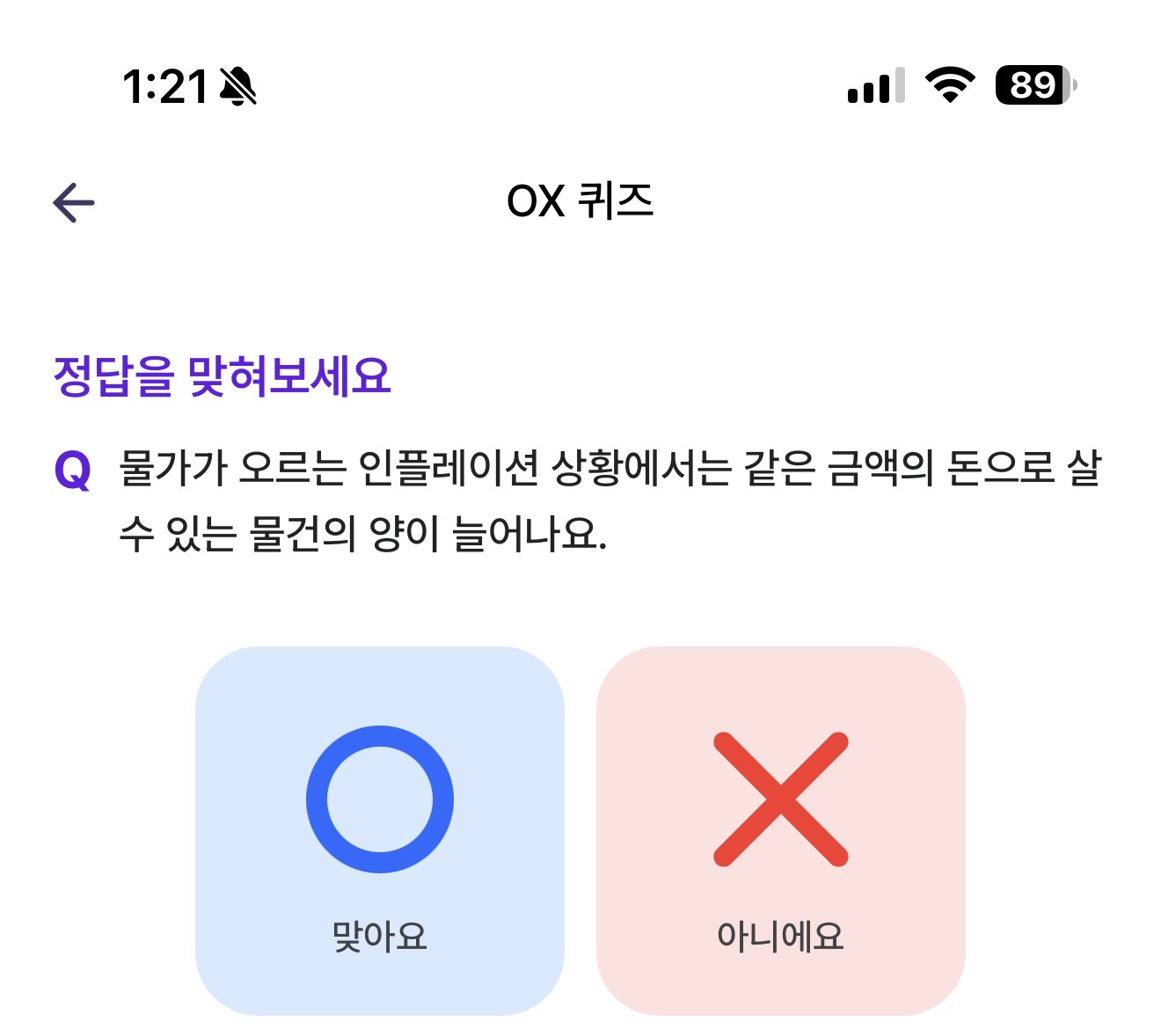 물가가 오르는 인플레이션 상황에서는 같은 금액의 돈으로 살 수 있는 물건의 양이 늘어나요 O, X 퀴즈인데요. 물가가 오르는 인플레이션 상황이 이뤄지고 있습니다. 같은 금액의 돈으로 살 수 있는 물건의 양이 늘어날까요?