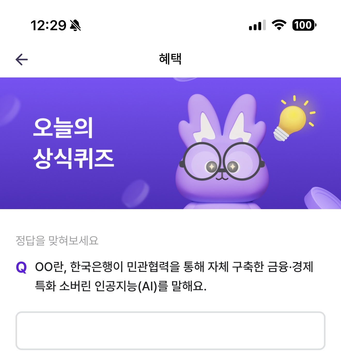 OO란, 한국은행이 민관협력을 통해 자체 구축한 금융, 경제 특화 소버린 인공지능(AI)를 말해요. 주관식 퀴즈인데요. 한국은행이 민관협력을 통해 자체 구축한 소버린 인공지능입니다.