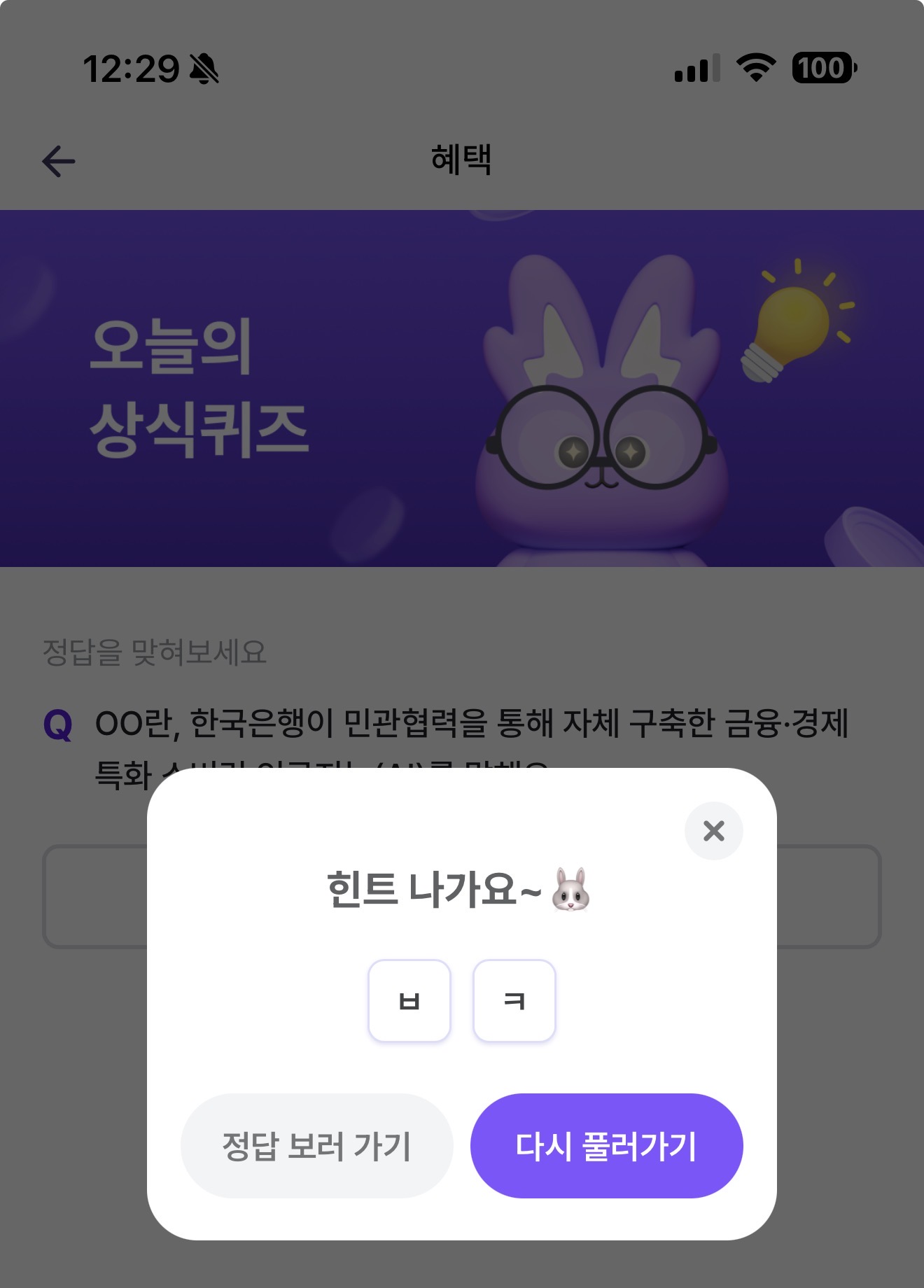 비트버니 오늘의 퀴즈 3월 1일 ㅂㅋ 정답(OO란, 한국은행이 민관협력을 통해 자체 구축한 금융, 경제 특화 소버린 인공지능(AI)를 말해요)