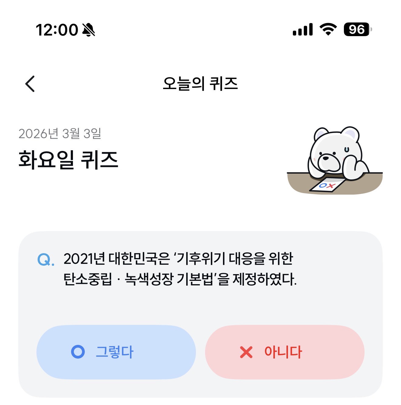 기후행동 기회소득 오늘의 퀴즈 정답은 그렇다 입니다