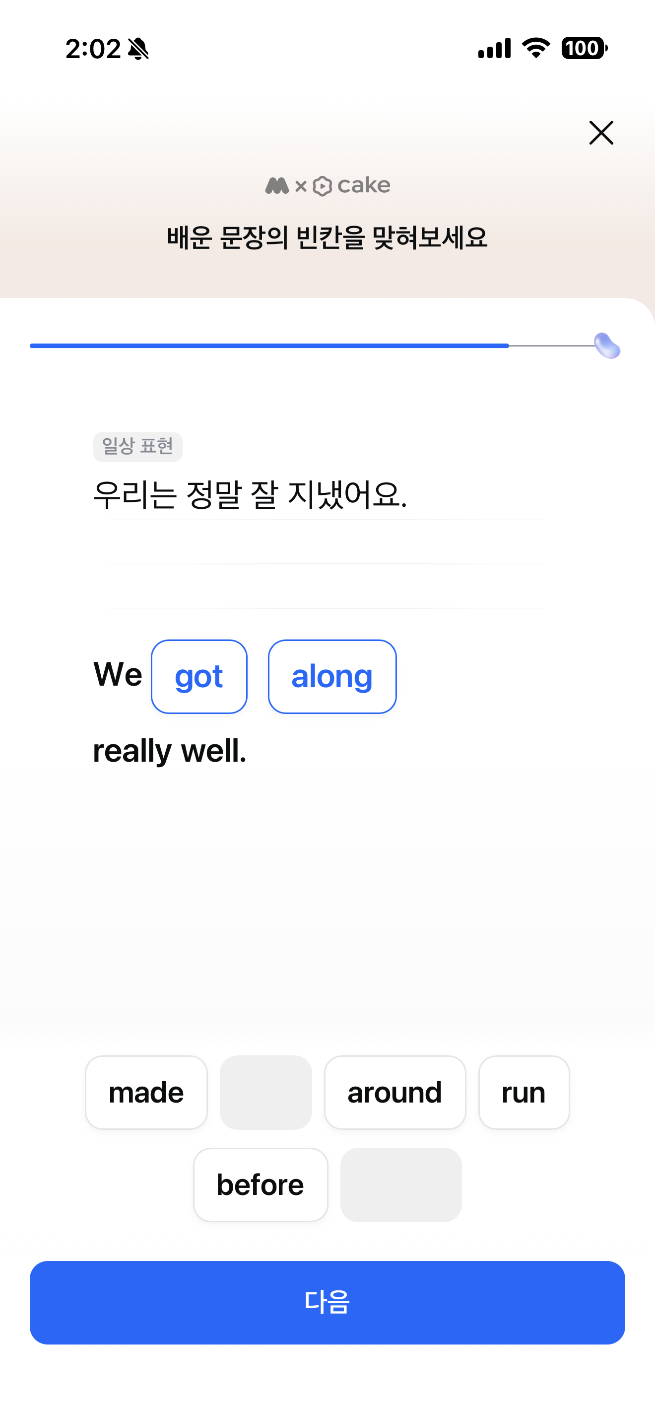 모니모 오늘의 영어 저희는 죽이 잘 맞아요와 함께 3개의 문제입니다