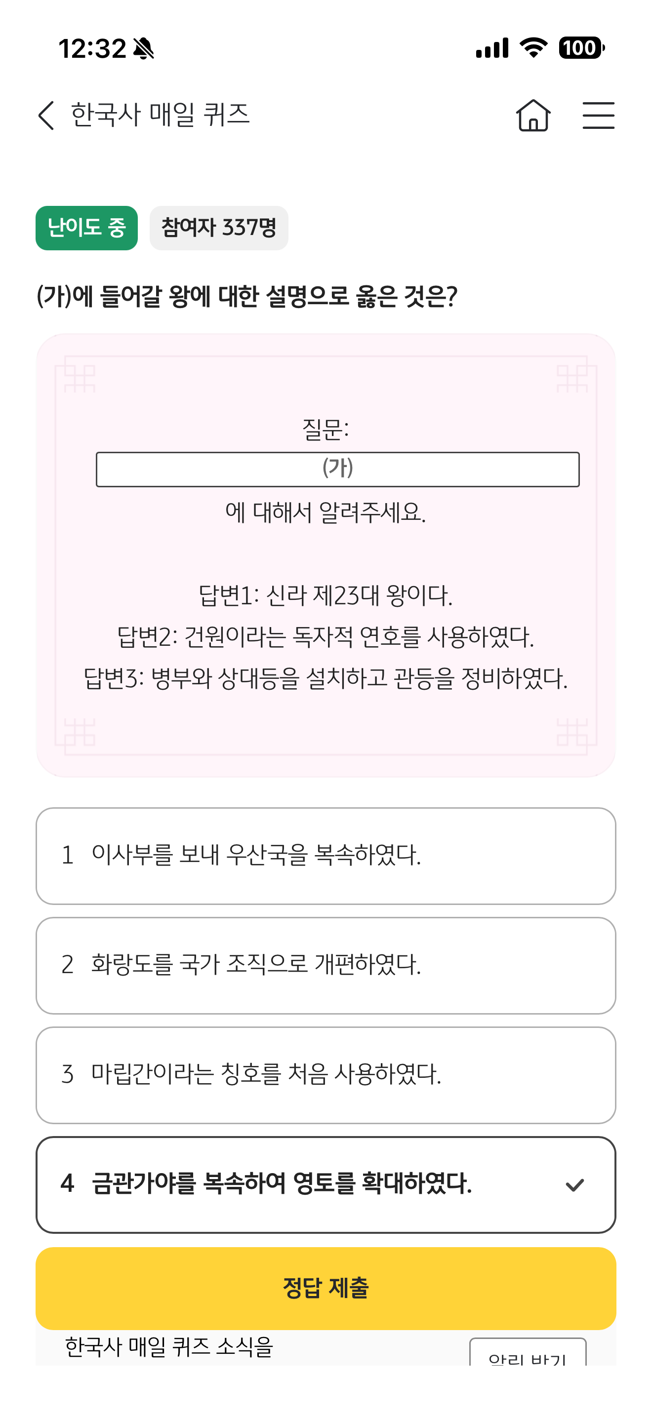 KB스타뱅킹 한국사 매일 퀴즈 3월 4일 문제입니다