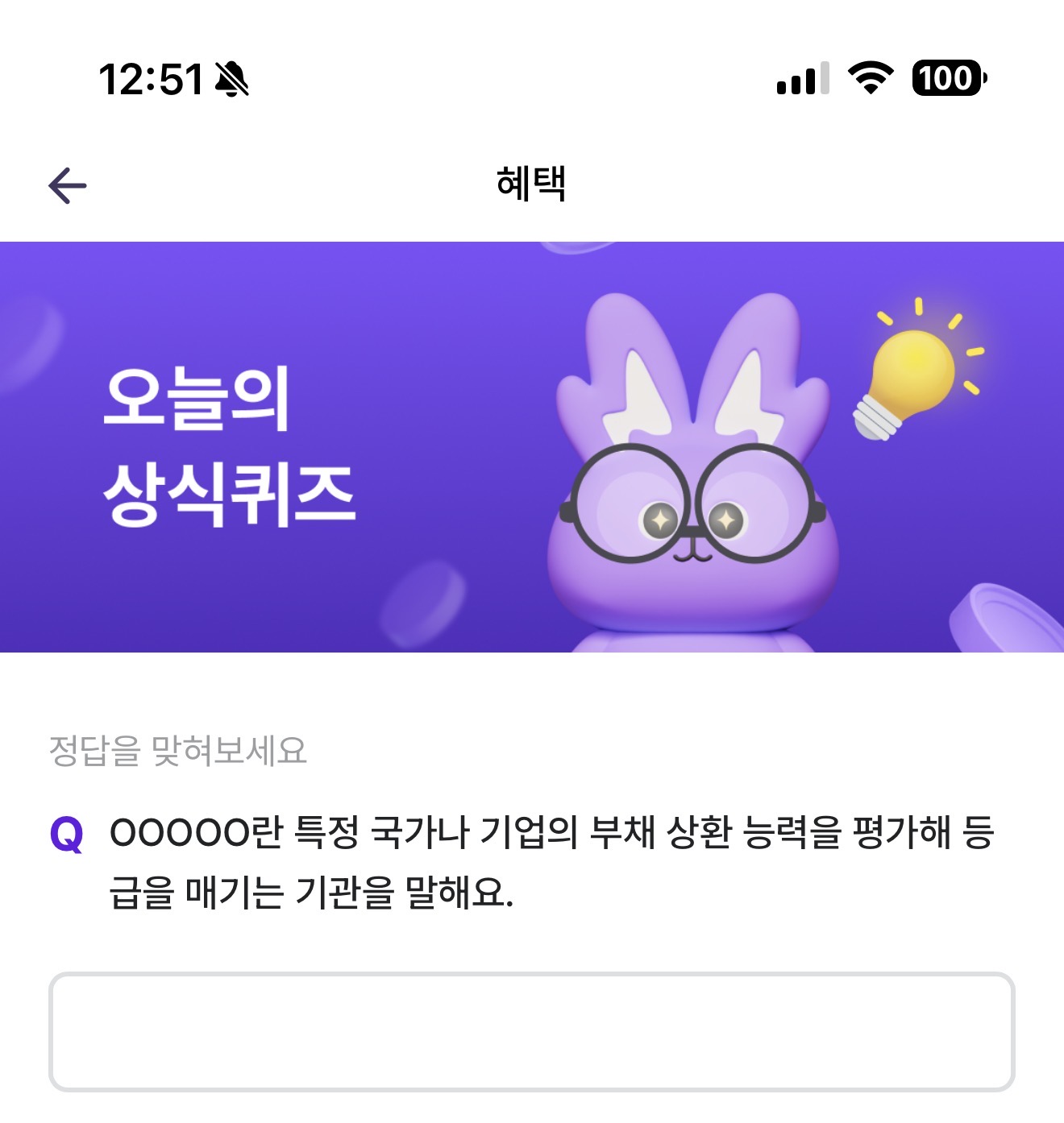 비트버니 오늘의 퀴즈 정답은 신용평가사 입니다